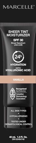 Marcelle Sheer Tint Moisturizer SPF 30, Vanilla, with Hyaluronic Acid and Aloe, Hypoallergenic, Non-Comedogenic, Fragrance-Free, Paraben-Free, Oil-Free, 40 mL