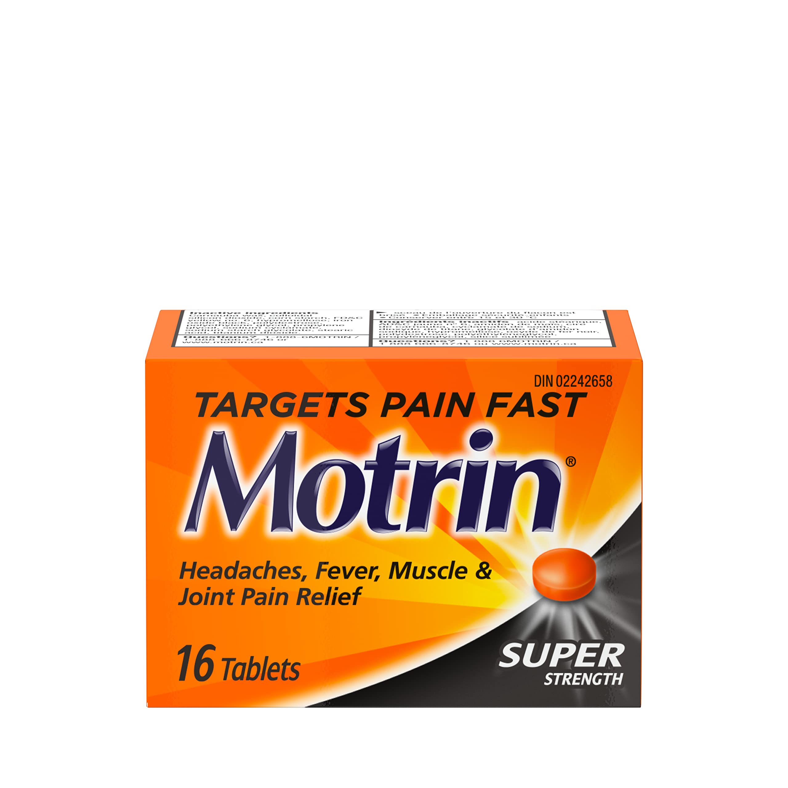 Motrin Super Strength Tablets, Pain Reliever for Menstrual Pain, Back Pain, Ibuprofen 400mg, 16 Tablets, orange