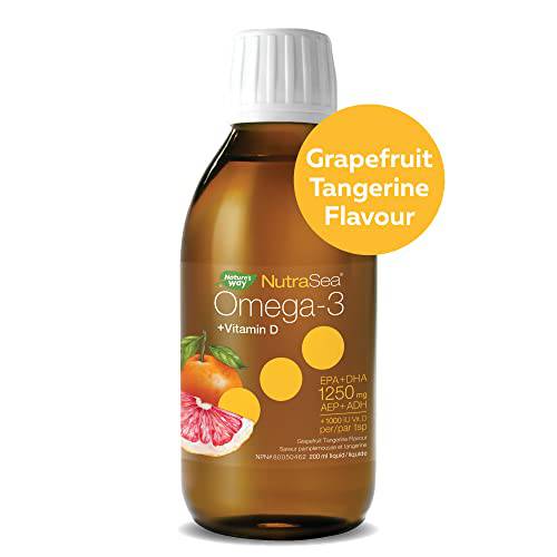 Nature's Way NutraSea Omega-3 and Vitamin D Supplement - Fish Oil with 1250mg EPA and DHA, 1000 IU Vitamin D3 – Support Healthy Heart and Brain, Help Build Strong Bones and Teeth & Help Support Immune System - Grapefruit Tangerine Flavour, 200 mL Liquid