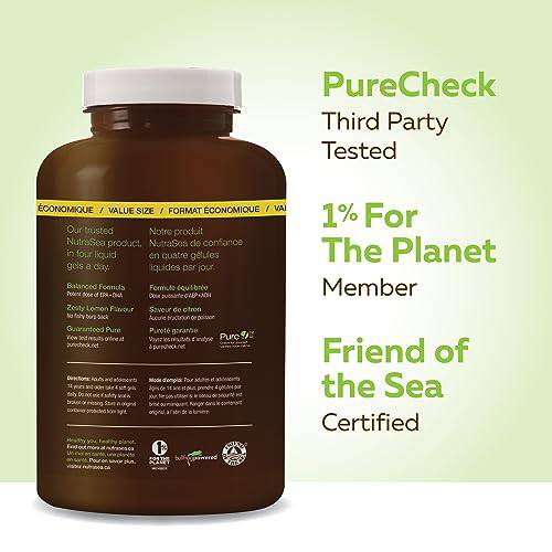 Nature's Way NutraSea Omega-3 Supplement Soft Gels with Zesty Lemon Flavour – EPA and DHA Fish Oil – Support Healthy Heart and Brain Function in Kids 14+ and Adults, 240 Softgels, Value Size