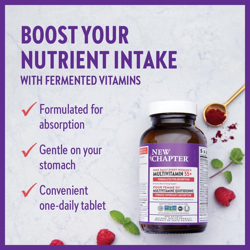 New Chapter Women's Multivitamin 50 Plus for Cellular Energy, Heart & Immune Support with 20+ Nutrients + Astaxanthin - Every Woman's One Daily 55+, Gentle on The Stomach, 60 Count