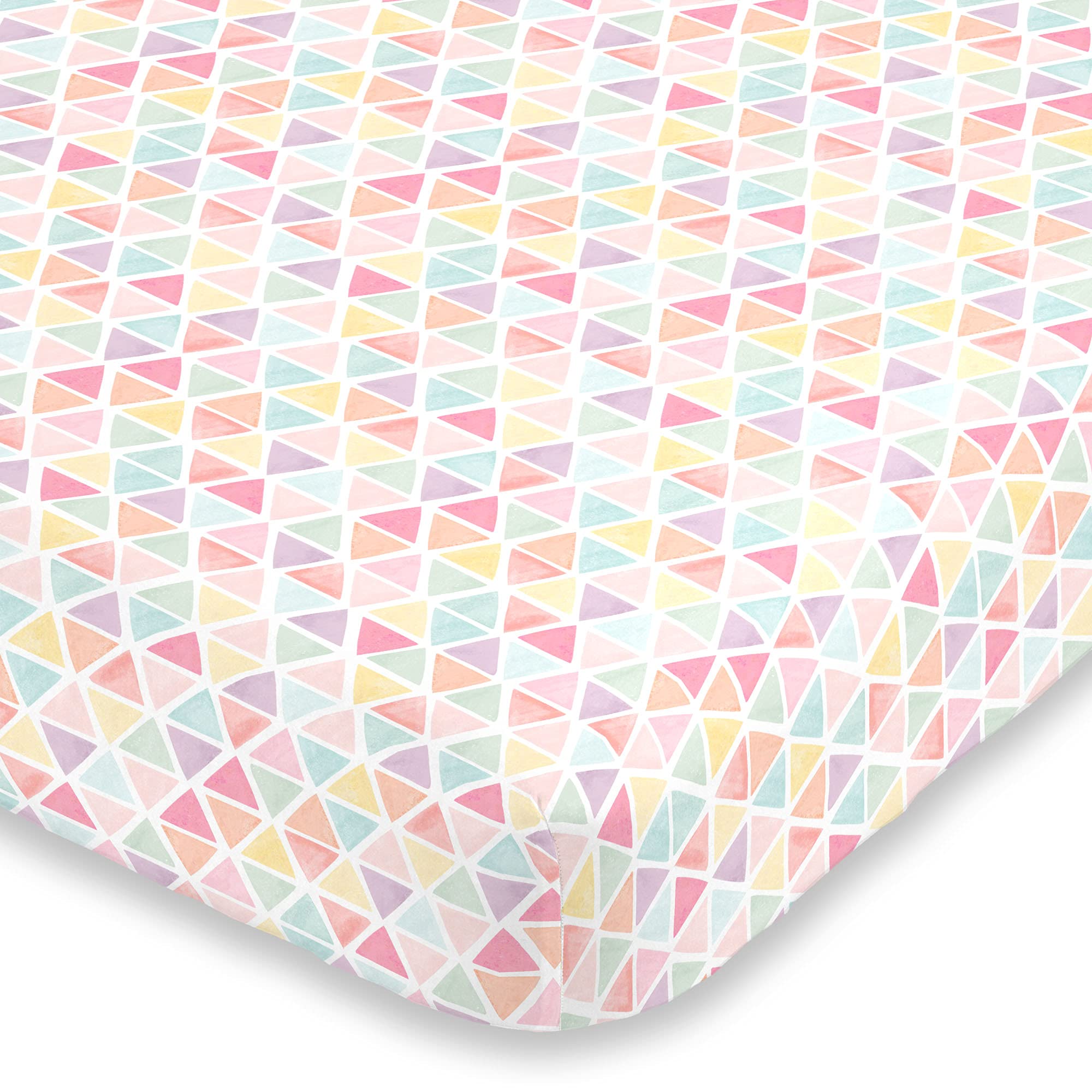 NoJo Watercolor Rainbow Mosaic Pink, Lavender, Aqua and Yellow Super Soft Fitted Mini Crib Sheet (2994745P)