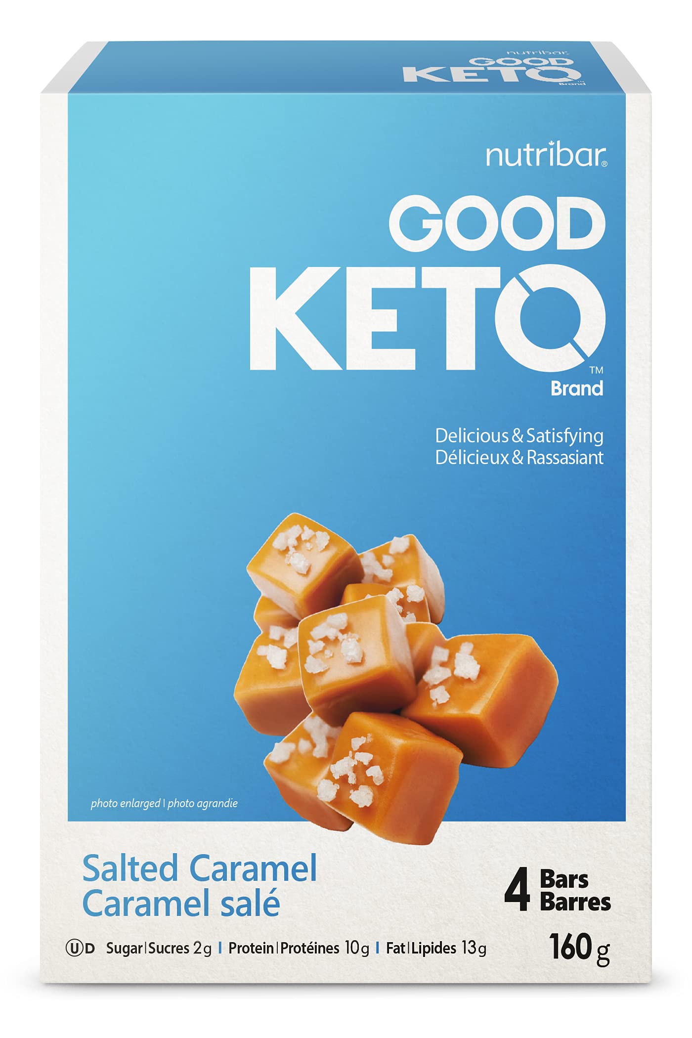 Nutribar Good Keto Bars, Salted Caramel, High Protein, Low Sugar, High Fibre, Keto Friendly, Made in Canada, 4-count