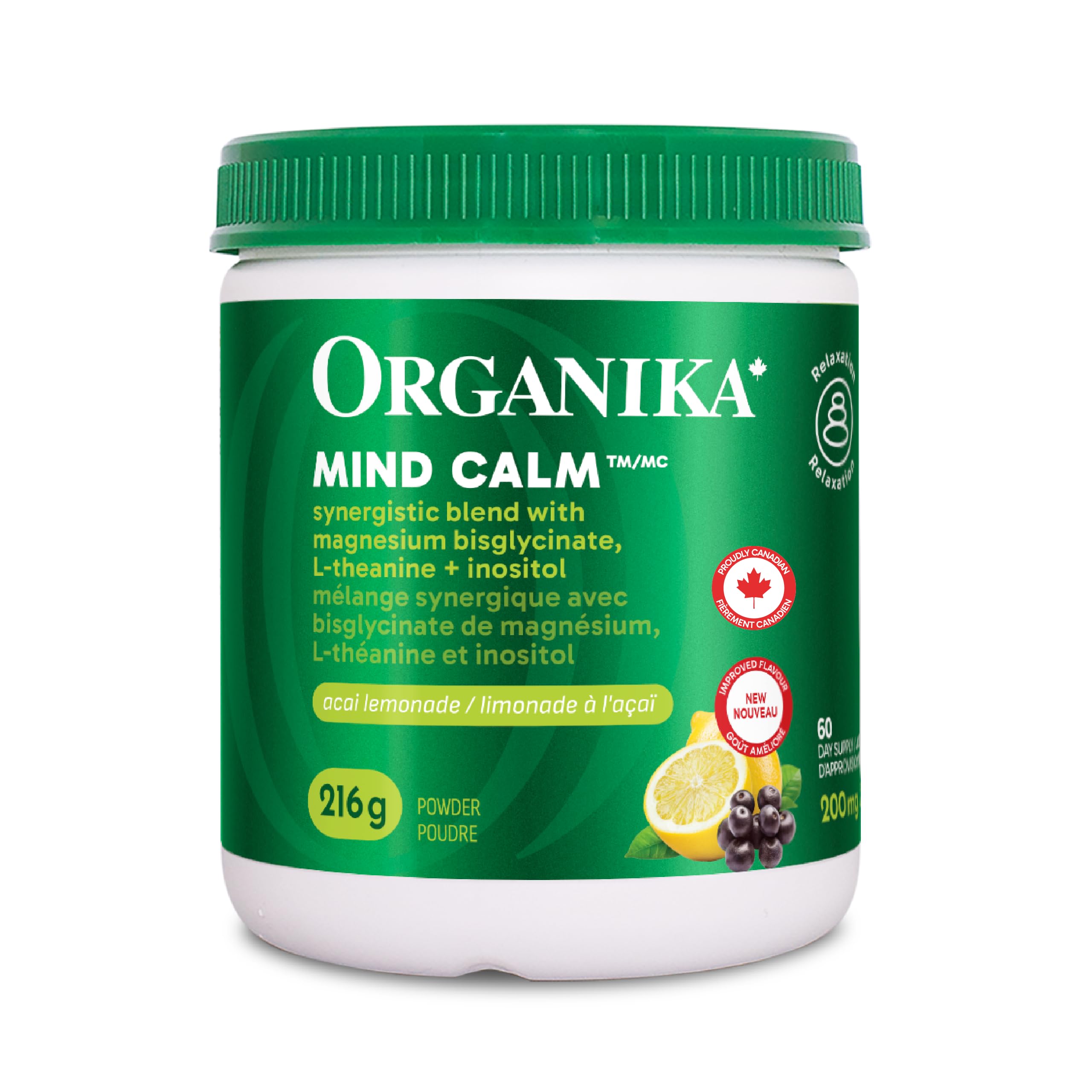 Organika Mind Calm Powder- with Magnesium Bisglycinate, L-Theanine, GABA, Inositol- Promotes Relaxation and Calm without Drowsiness- Acai Lemonade Flavour- 216g
