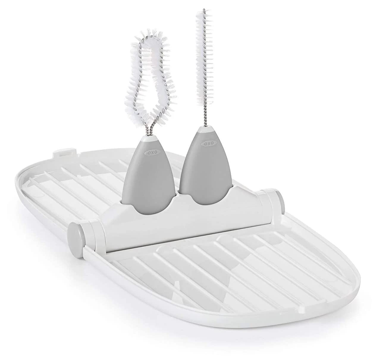 Oxo Tot Breast Pump Parts Compact Drying Rack with Detail Brushes, Gray