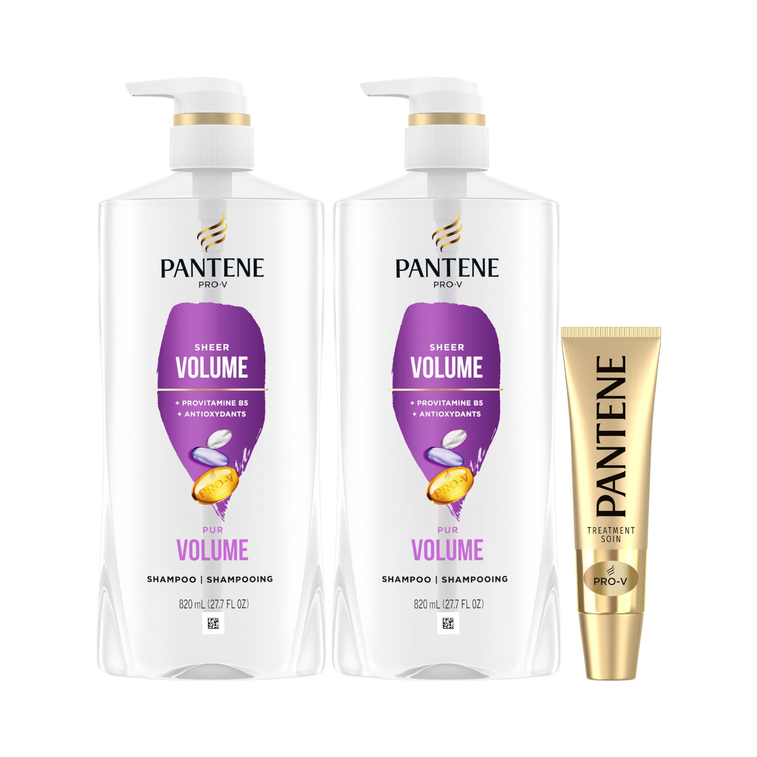 Pantene PRO-V Volume & Body Twin Pack Shampoo, 820 mL Each + Intense Rescue Shot Treatment, 15 mL for dry hair, 1.65 L in Total