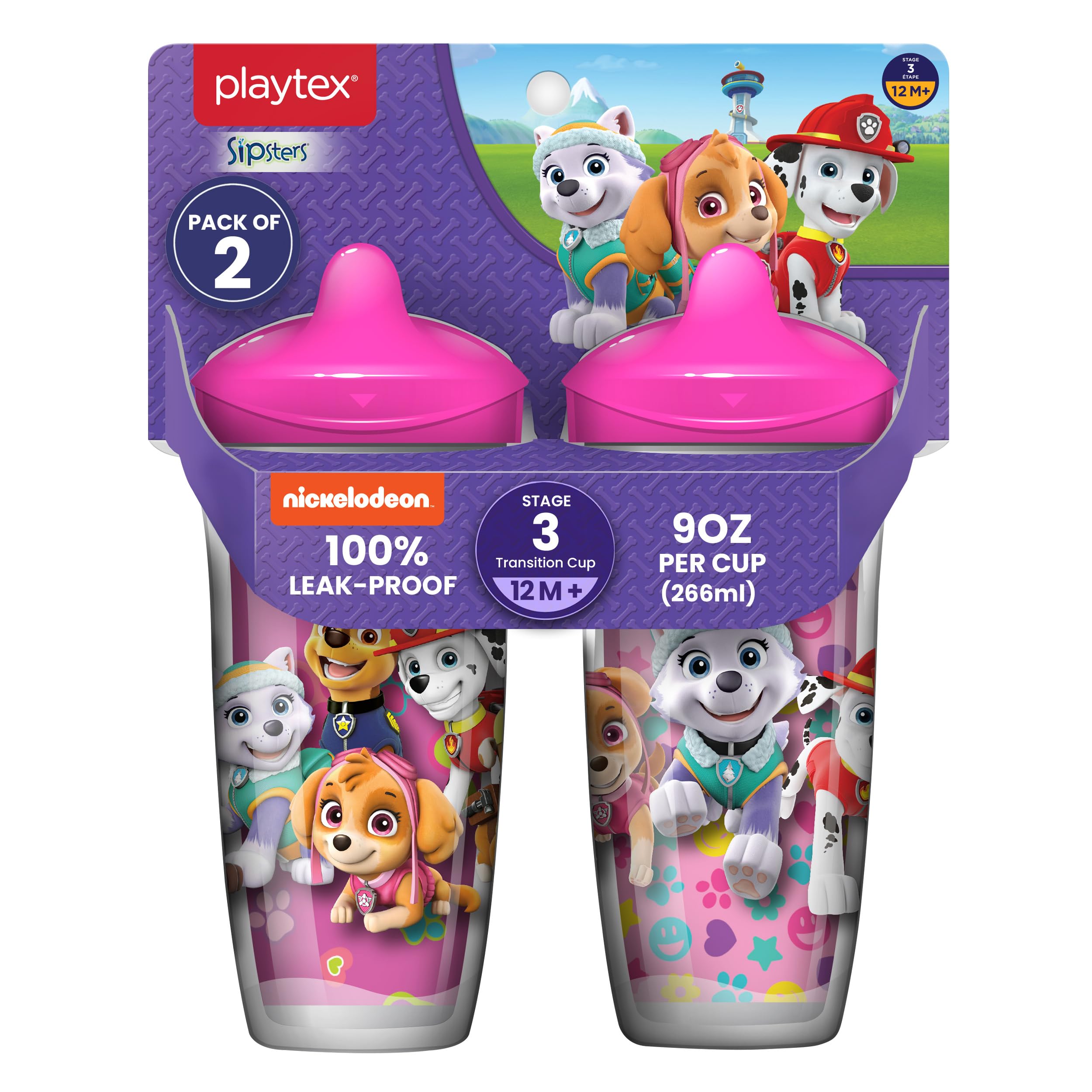 Playtex Baby Sipsters Hard Spout PAW Patrol Sippy Cup for 12+ Months, 9 Ounce (2 Count), Pink, Insulated Toddler Water Bottle for Kids, Spill-Proof Cups for Toddlers 1-3, Stage 3