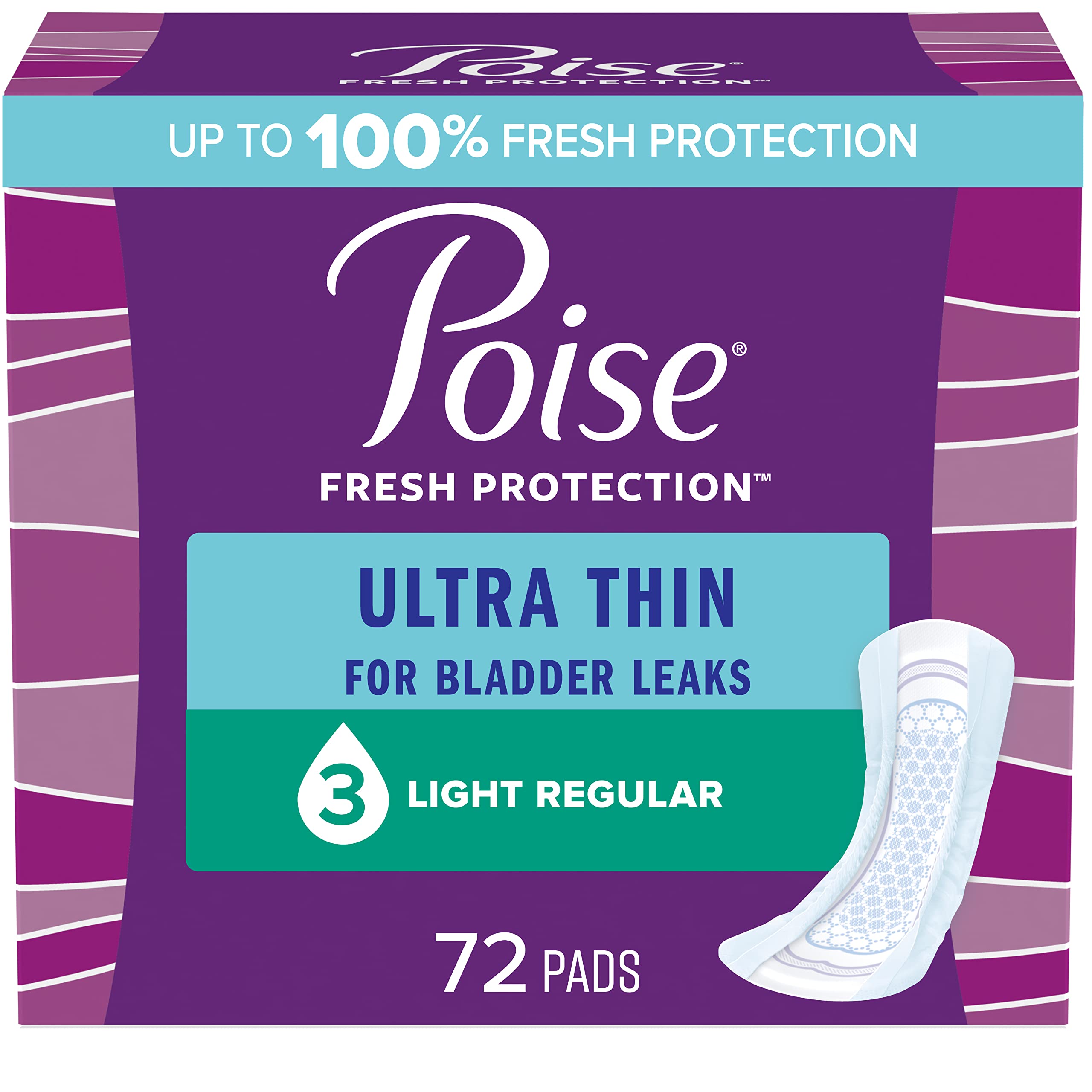 Poise Ultra Thin Incontinence Pads & Postpartum Incontinence Pads, 3 Drop Light Absorbency, Regular Length, 72 Count
