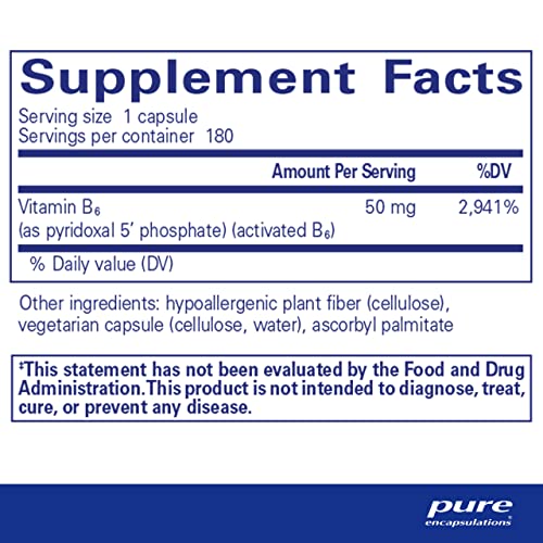 Pure Encapsulations P5P 50 - Active Vitamin B6 - Supports Energy Metabolism & Brain Health* - Gluten Free & Non-GMO - 180 Capsules