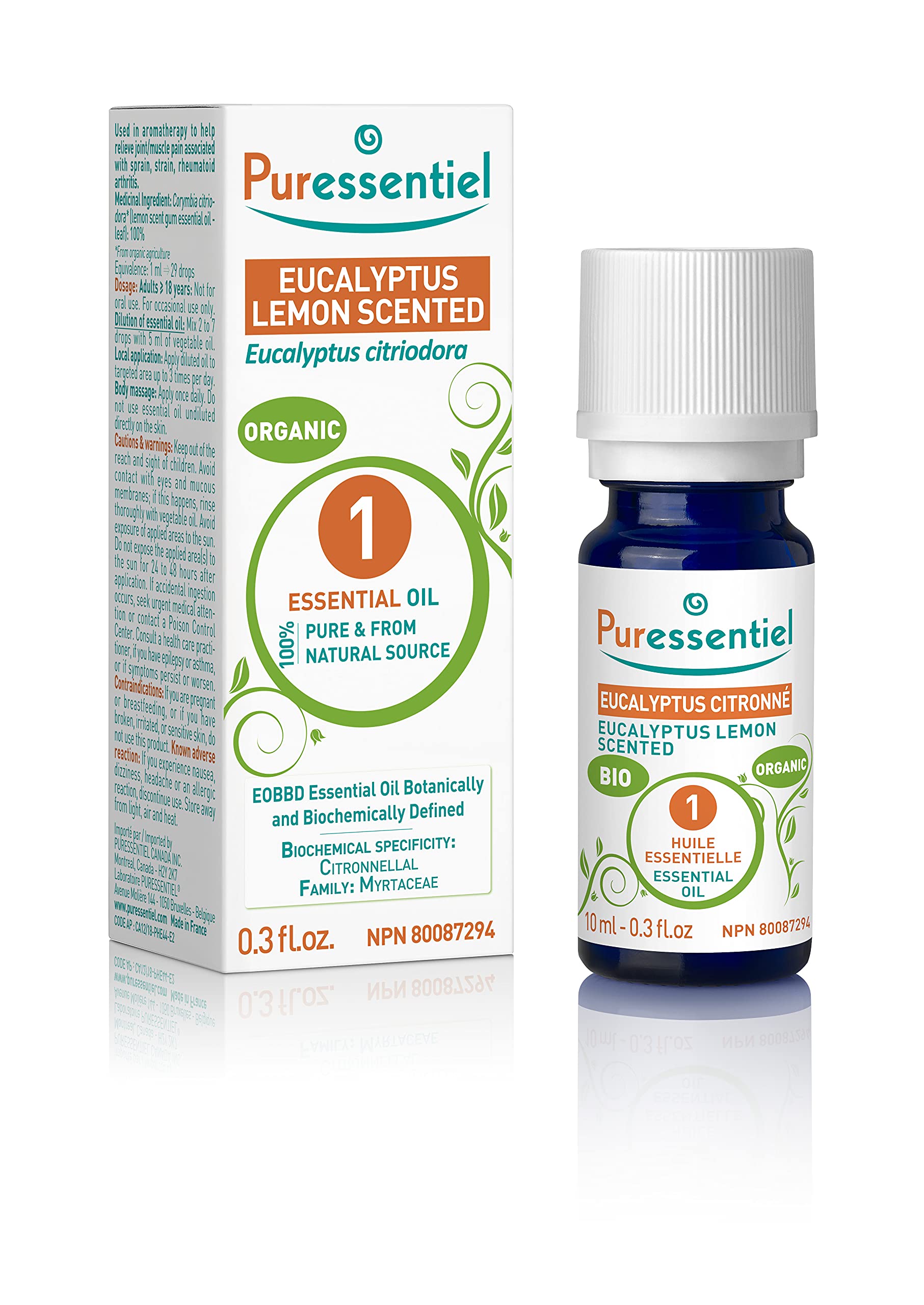 PURESSENTIEL - Eucalyptus Lemon Scented Organic Essential Oil - Used in aromatherapy topically for muscle pain, headache or cough and cold - 100% pure and natural - 10ml