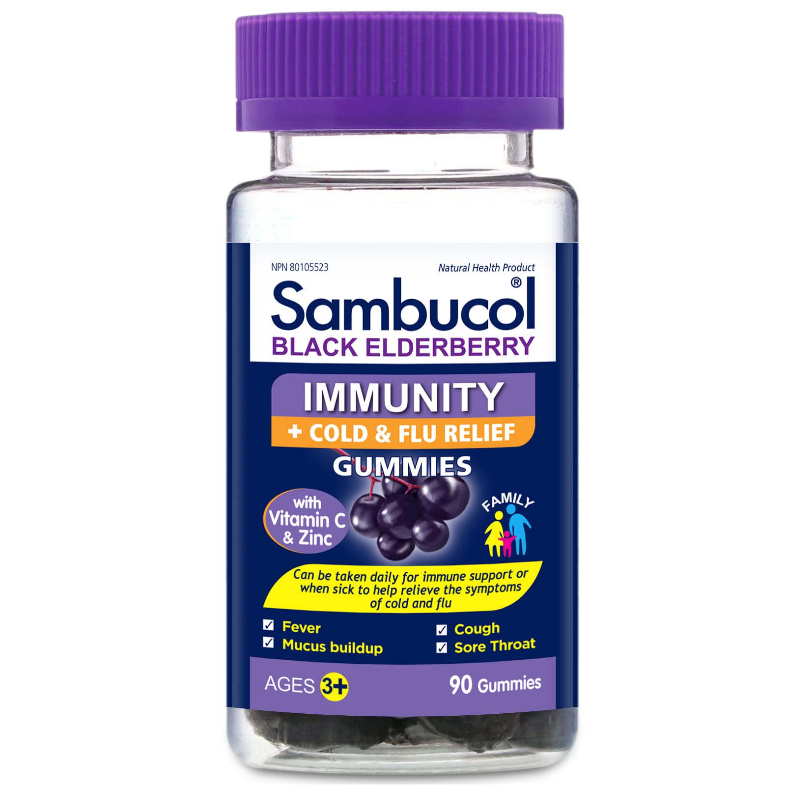 Sambucol Black Elderberry Immunity Gummies | Immune Support & Antioxidant | Quickly Relieves Cold & Flu Symptoms | Ideal for Families | Gluten Free | 90 Gummies