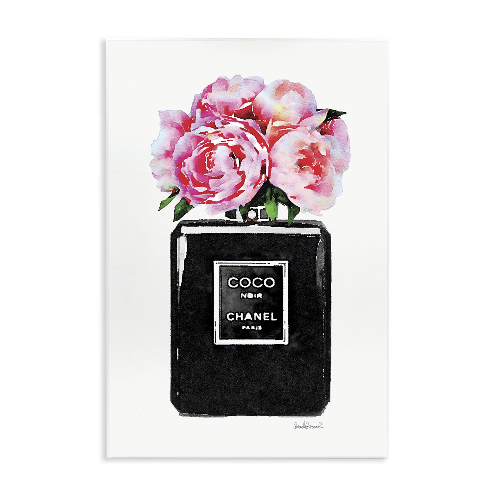 Stupell Industries Glam Perfume Bottle Flower Black Peony Pink Wall Plaque Art, Proudly Made in USA