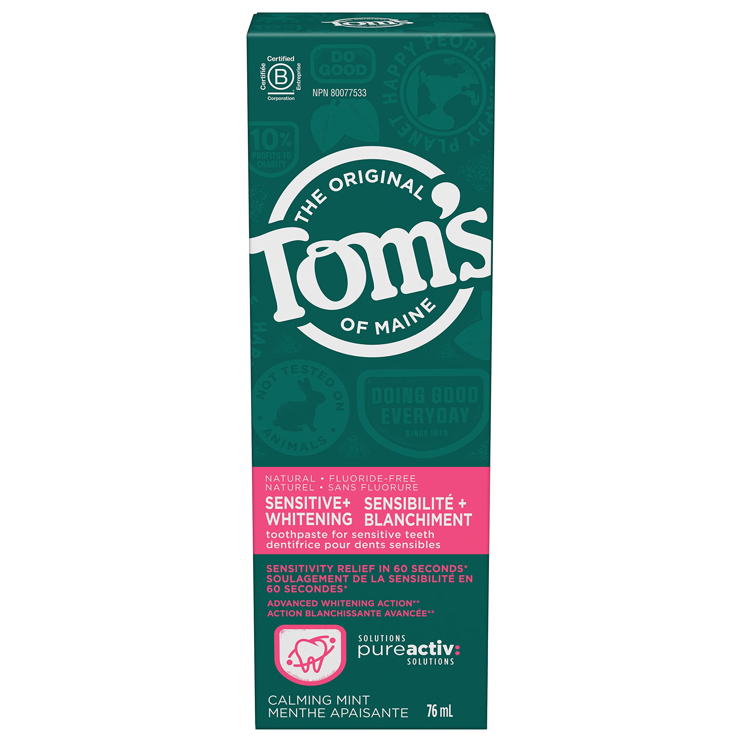 Tom’s of Maine PureActiv Sensitive + Whitening Fluoride Free Toothpaste, Calming Mint, 76 ml