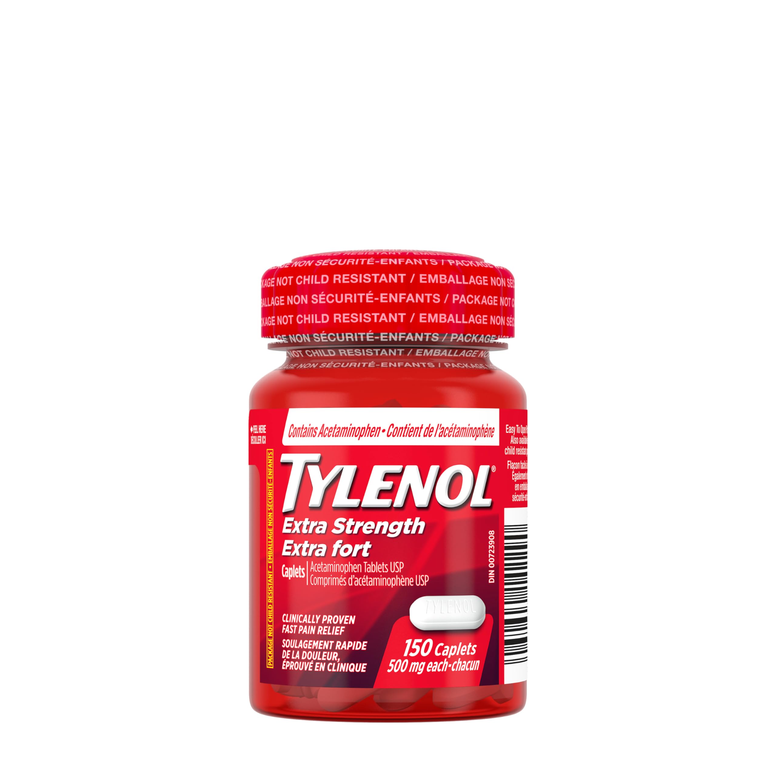 Get fast relief of headaches, aches and pain, and fever with TYLENOL Extra Strength Acetaminophen 500mg Caplets that are tough on pain, but gentle on your stomach. Containing 500 milligrams of acetaminophen in each caplet, TYLENOL Extra Strength offers fast and effective relief of pain and fever. These easy-to-swallow tablets act quickly to provide effective relief of headache, tension headache, mild to moderate migraine pain; pain of mild to moderate arthritis pain, minor muscle sprains and strains, menstrual cramps and aches and pains due to cold and flu.