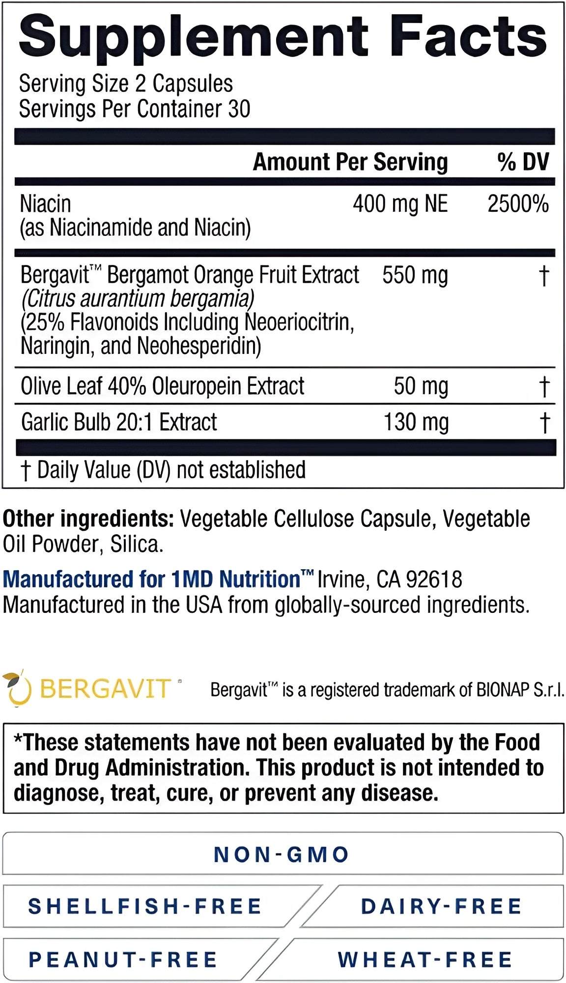1MD Nutrition CholestMD Supports Healthy Cholesterol Levels Already in Normal Range, Promote Healthy Heart - Cholesterol Supplement w/ Olive Leaf Extract, Citrus Bergamot, Niacin, Garlic- 60 Capsules