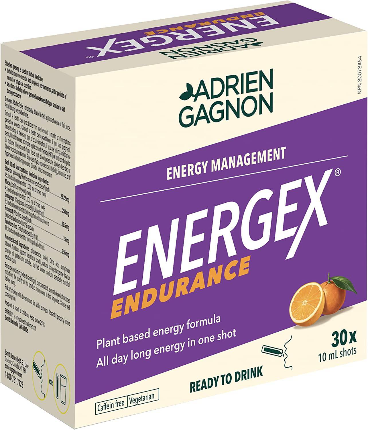 ADRIEN GAGNON - Energex Endurance Liquid – All Day Long Plant-Based Energy – Maca, Ginseng & Adaptogenic Plants - Tangerine Flavor - 30 Shots