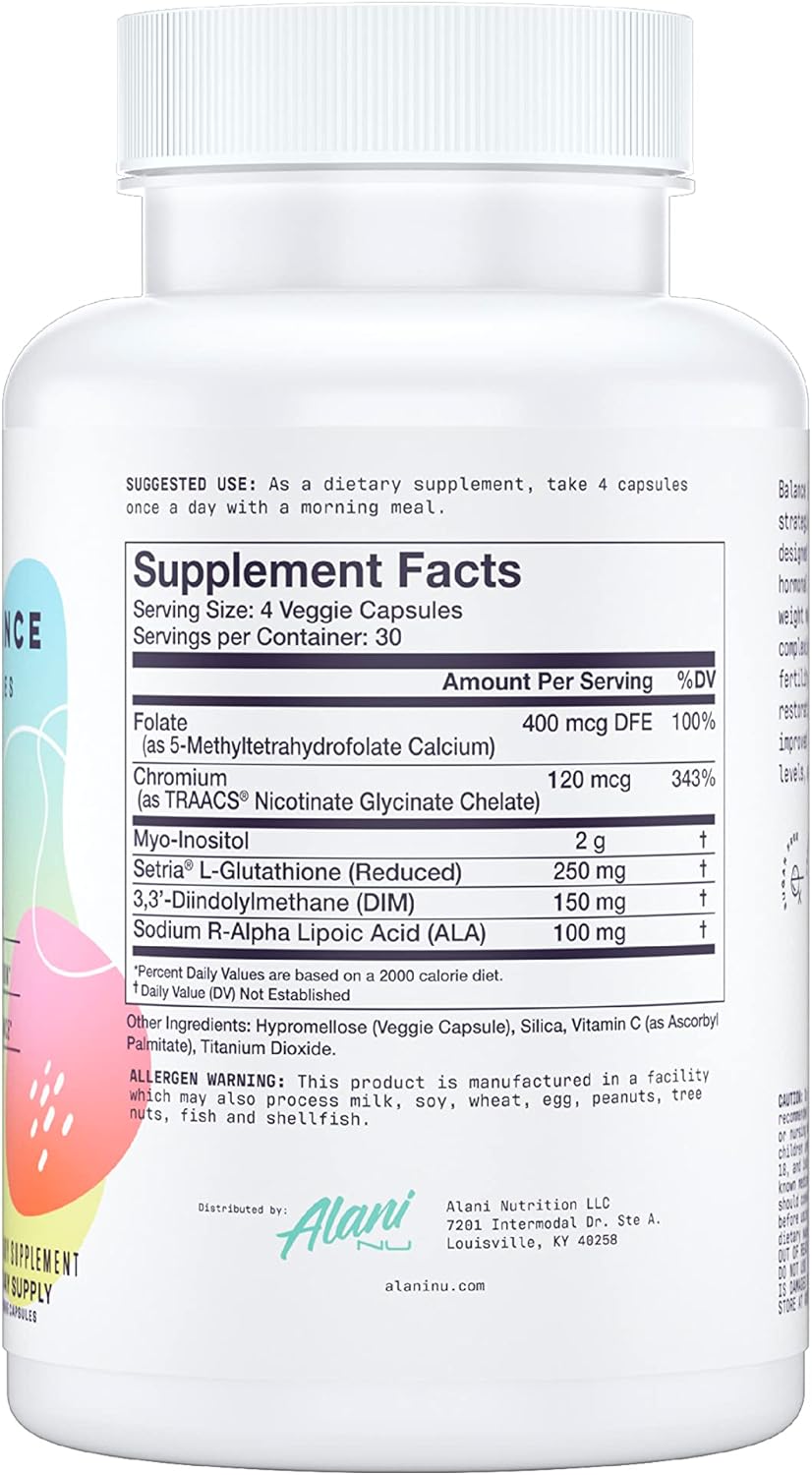 Experience balance and support for your hormones, weight, complexion, and fertility with our 5-star supplement, Alani Nu Balance. Promote female fertility, improve energy levels and enjoy restorative sleep with Myo-Inositol. Brighten your complexion and reduce wrinkles with L-Glutathione. Prevent drastic changes in estrogen levels with DIM and prevent weight gain with Chromium. Contains folate to help support fetal development.