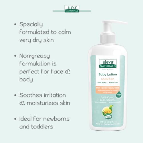 Aleva Naturals Baby Lotion Face + Body Moisturizer- For Sensitive Dry Skin, Face and Body Lotion, Made with Natural and Organic Ingredients, for Babies and Toddlers - 240ml
