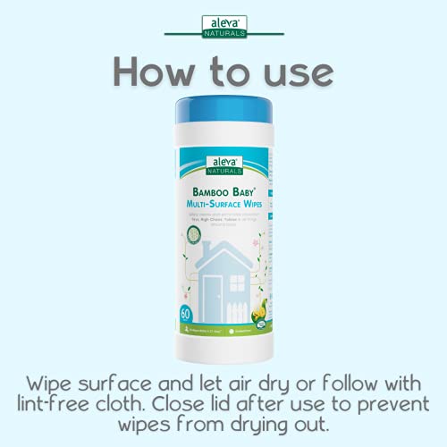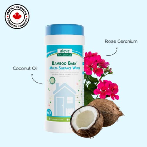 Aleva Naturals Bamboo Multi-Surface Wipes - Gentle and Easy to Use, Healthy Baby Care, Vegan Wipes Cleaner, Coconut Oil with Refreshing Rose Geranium Scent - Value Pack- 3 X 60 Count = 180 Count