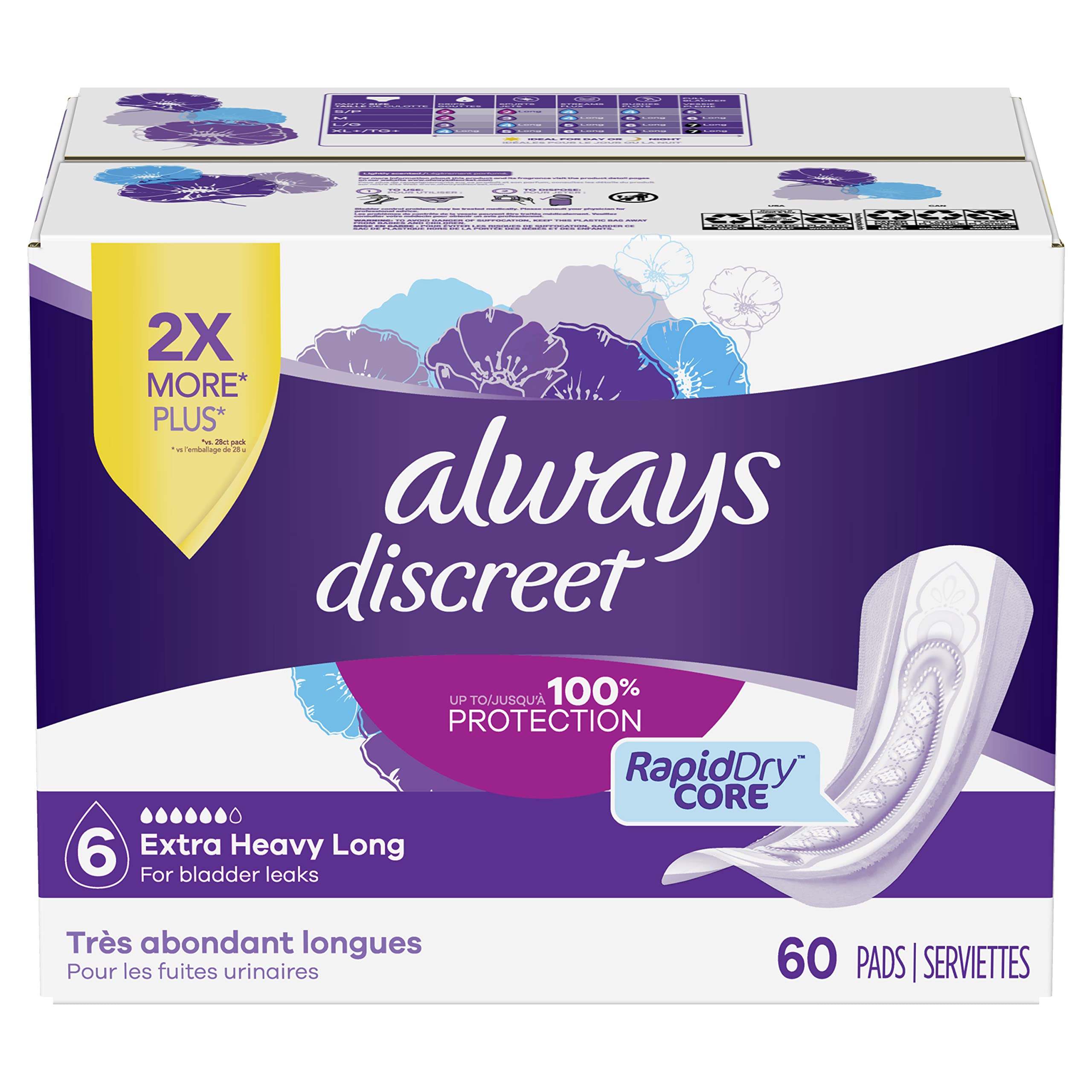 Discreet Adult Incontinence Pads for Women, Extra Heavy Absorbency, Long Length, Postpartum Pads, Up to 100% Bladder Leak Protection, 60 Count