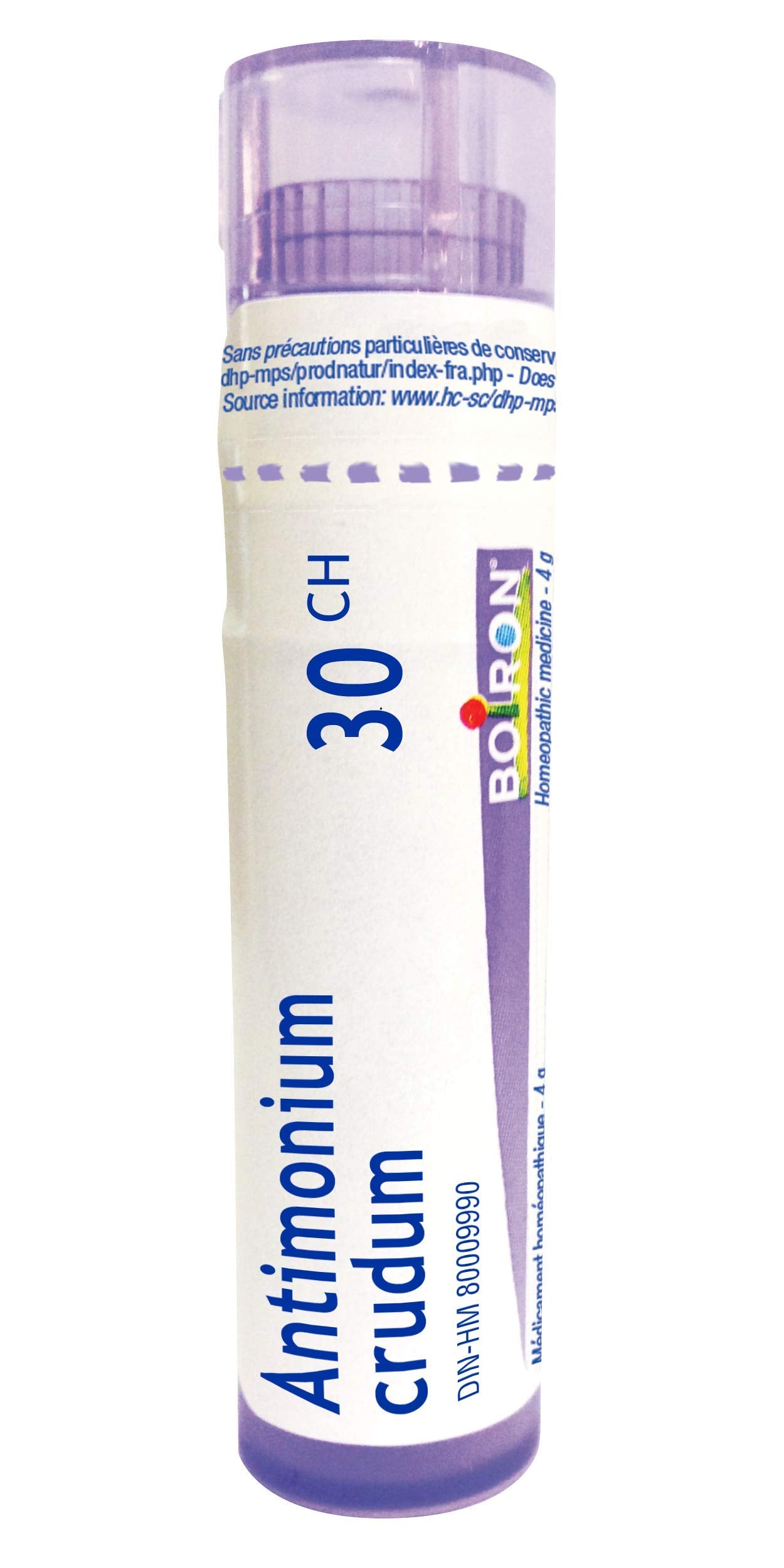 Boiron Antimonium crudum 30ch,Homeopathic medicine. Each tube contains 4 g (approximately 80 pellets)