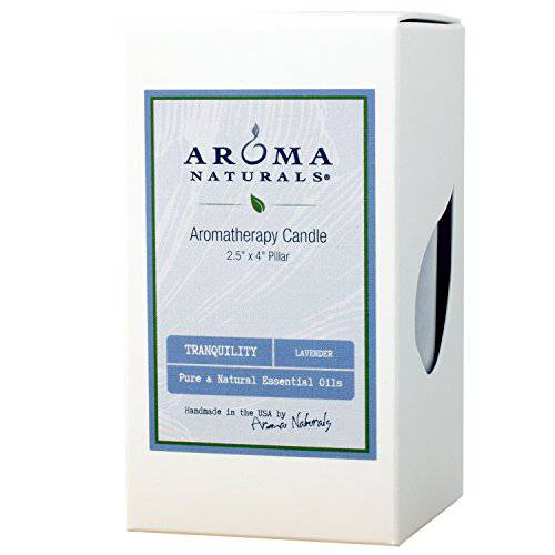 Aroma Naturals Essential Oil Tranquility Pillar Candle, 2.5" x 4", Lavender, 11 Ounce