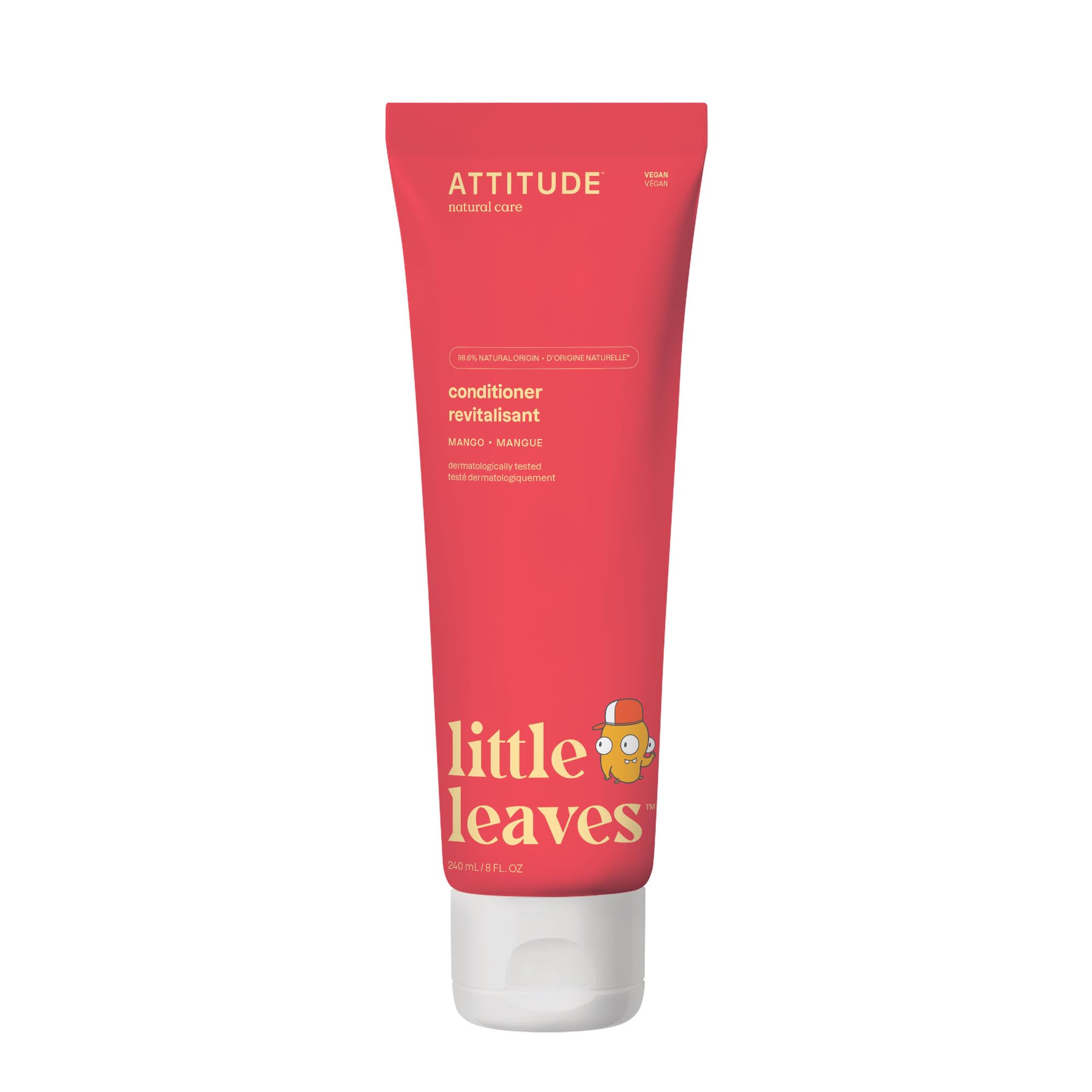 ATTITUDE Hair Conditioner for Kids, Made in Canada, Dermatologically Tested Products, Plant- and Mineral-Based Detangler, Vegan, Mango, 240 mL