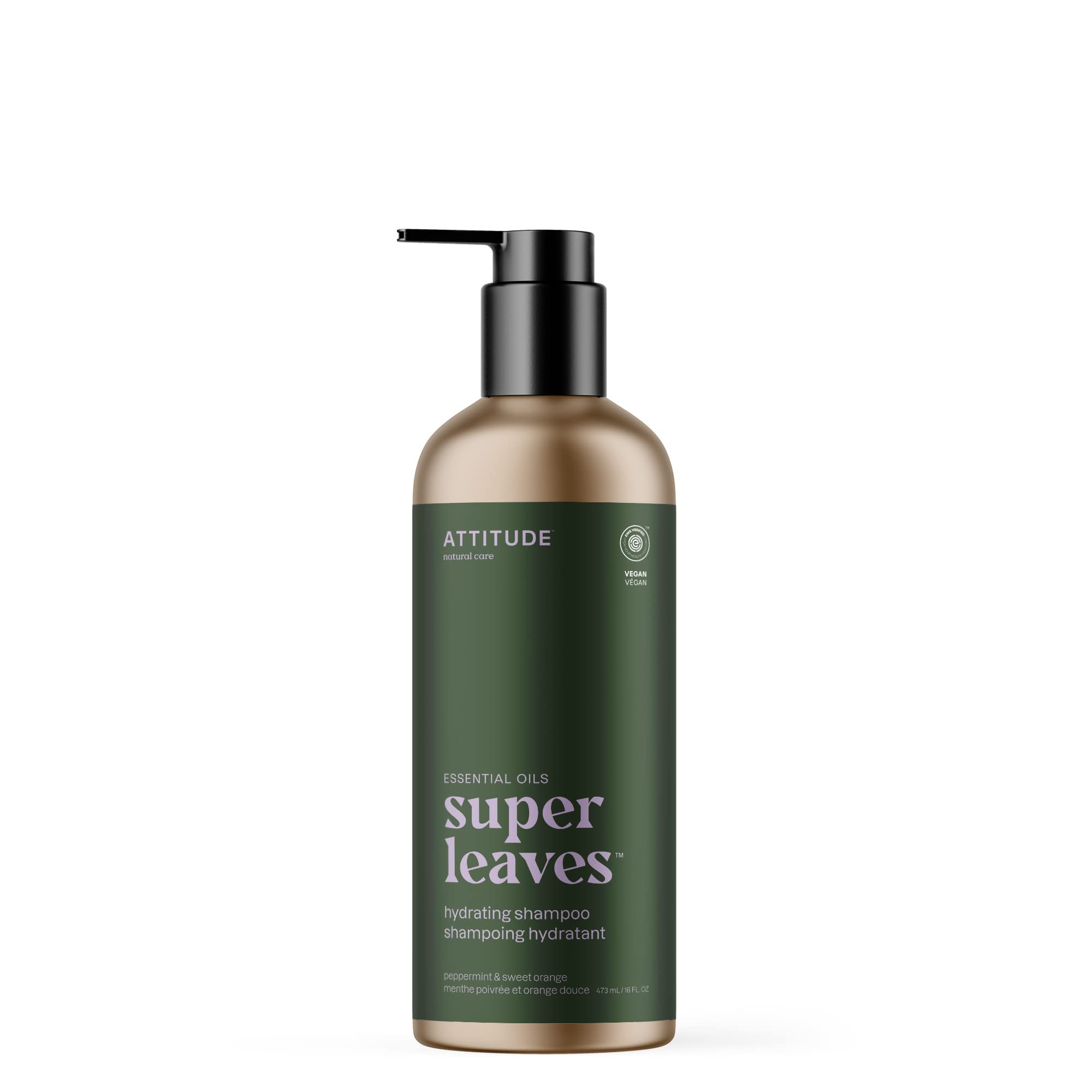ATTITUDE Hydrating Shampoo, Peppermint & Sweet Orange, EWG Verified with Essential Oils, Vegan & Plant-Based, Aluminum Bottle, For Dry and Damaged Hair, 473 mL