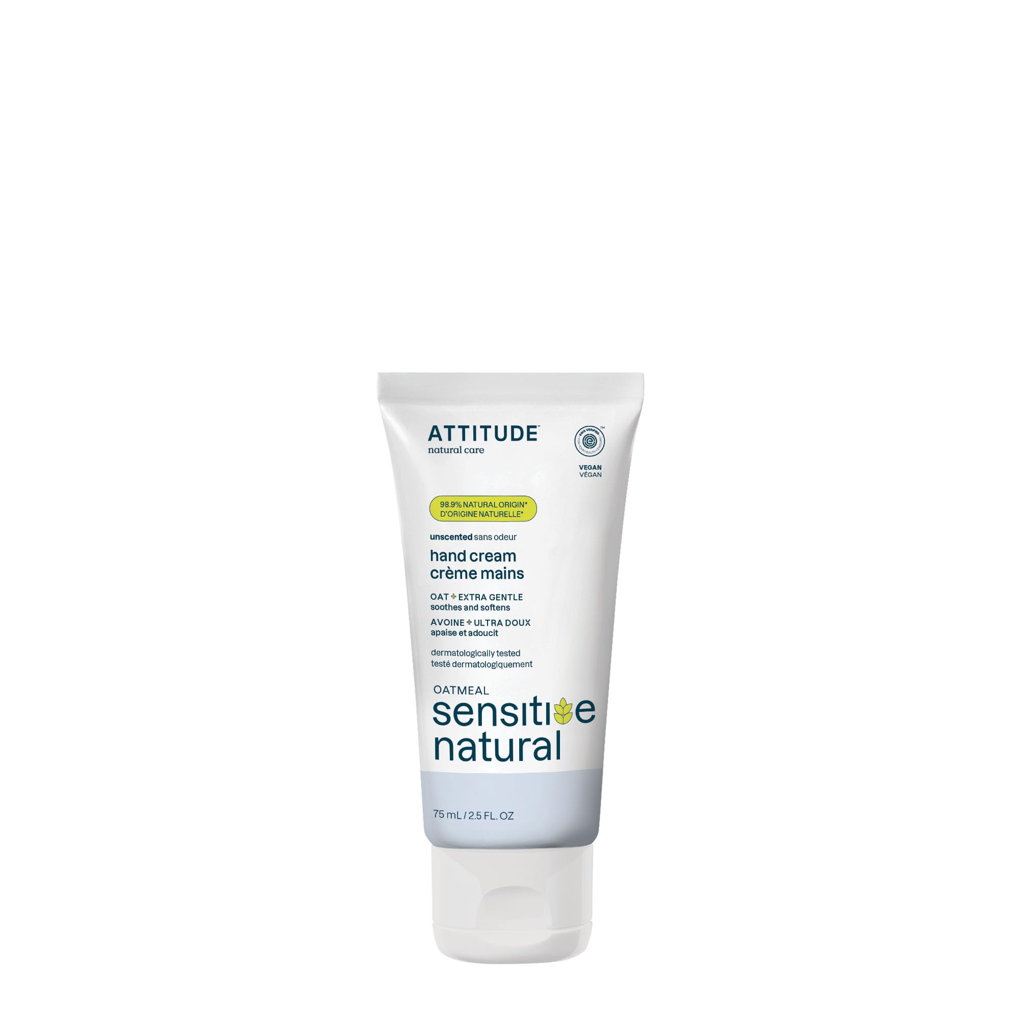 ATTITUDE Hand Cream for Sensitive Skin with Oat, Made in Canada, EWG Verified, Dermatologically Tested, Vegan, Unscented, 75 mL