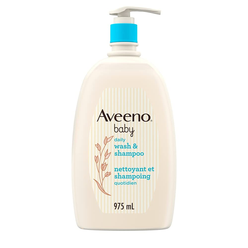 Aveeno Baby Wash and Shampoo - Gentle 2-in-1 Body Wash with Natural Oat Extract for Sensitive Skin - Tear-Free, Hypoallergenic Cleanser, Free from Parabens, Sulfates & Dyes - 975ml