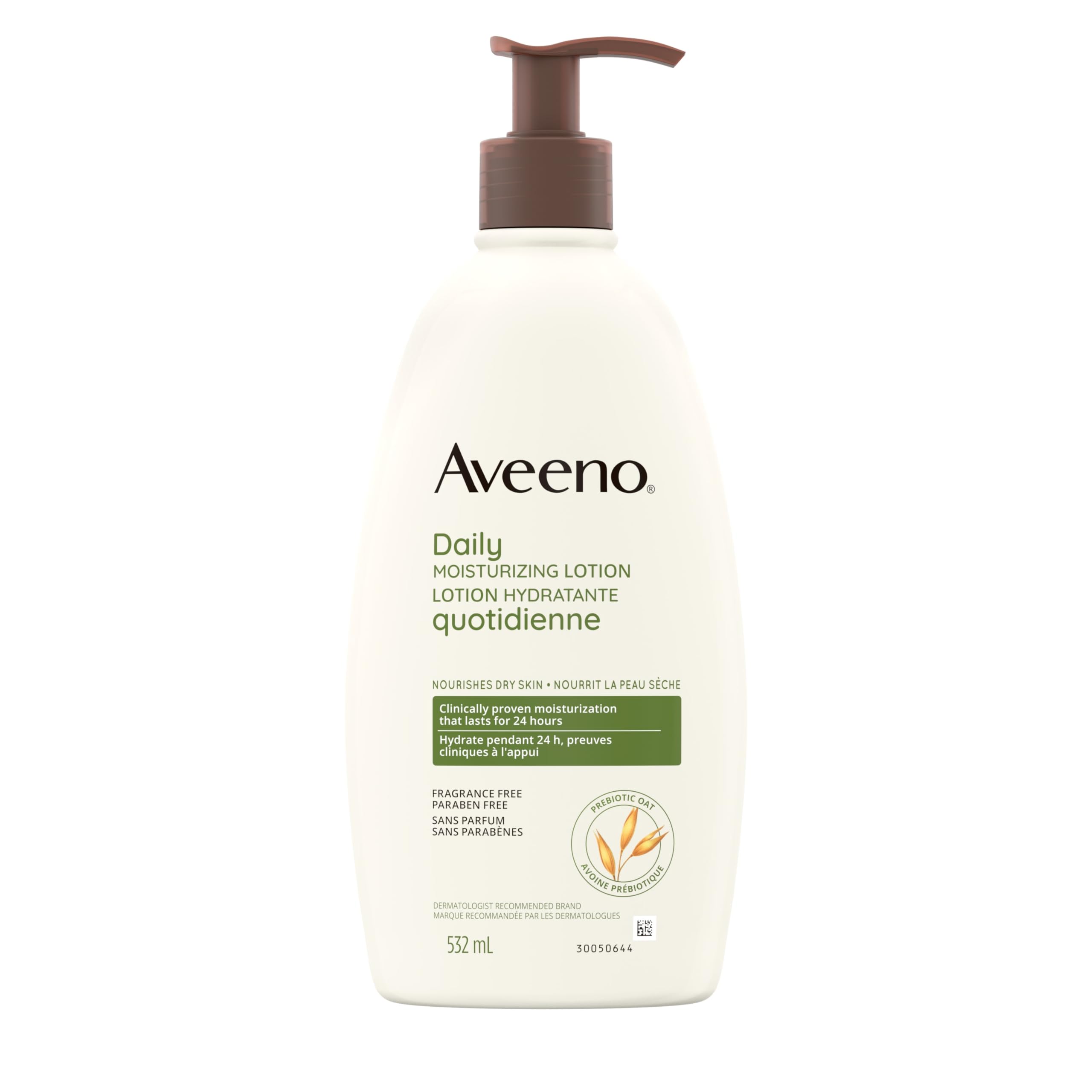 Aveeno Daily Moisturizing Lotion, Dry Skin, Non Comedogenic, Prebiotic Oat, Daily Moisturizer, Fragrance Free, 532mL
