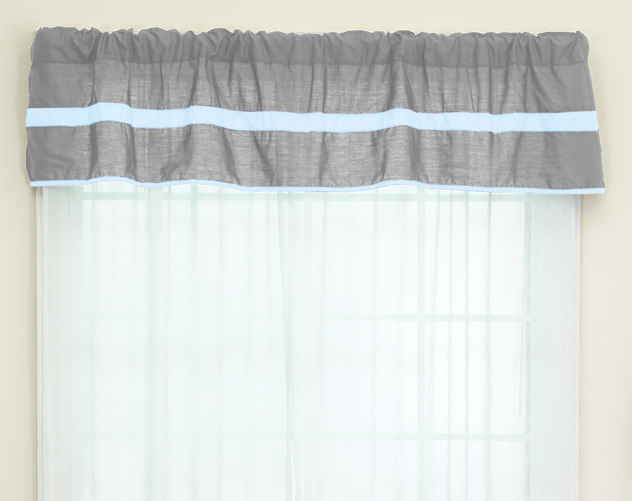 Baby Doll Bedding Solid Stripe Window Valance, Grey/Blue