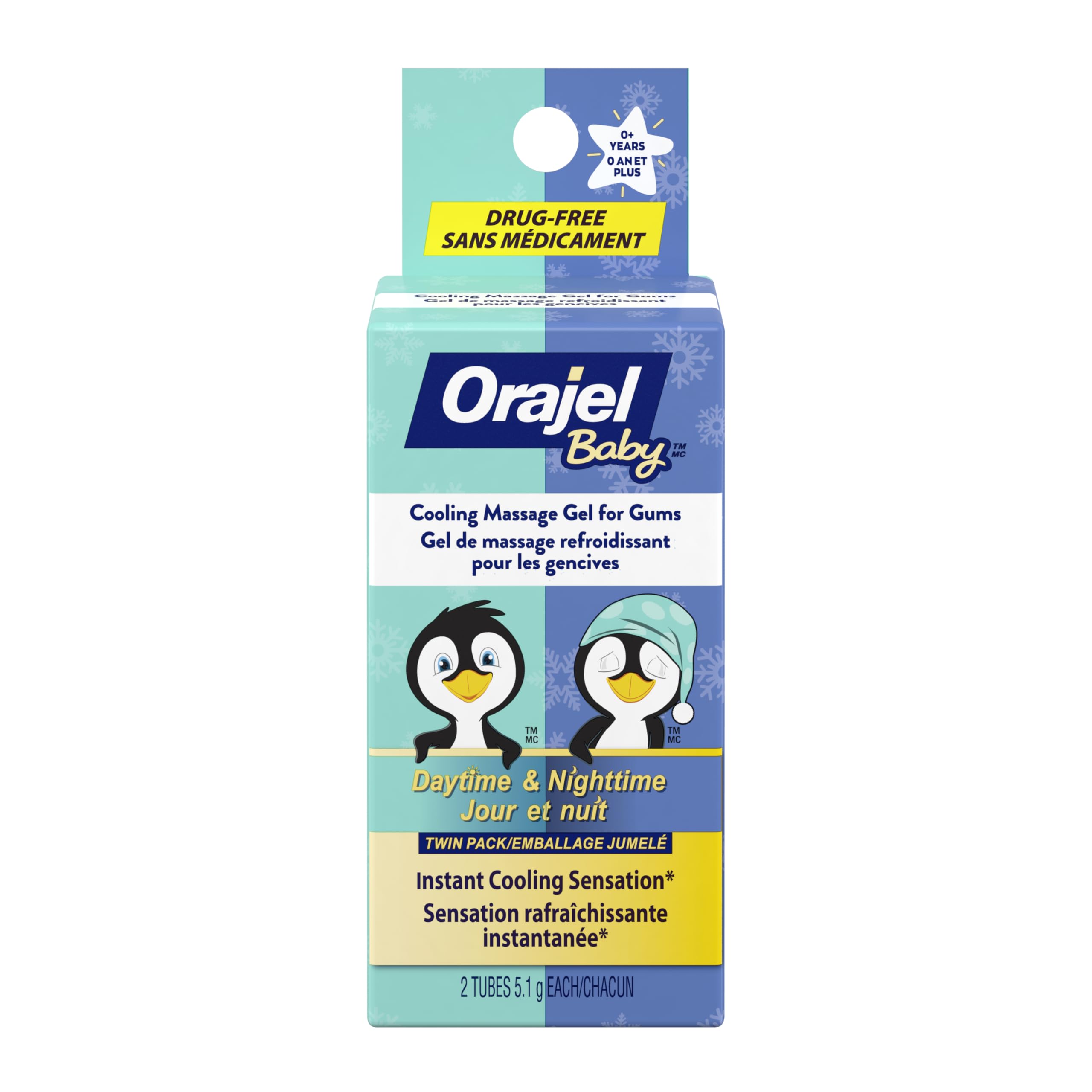 Orajel Baby Cooling Massage Gel for Gum, Daytime & Nighttime Combo Pack, Instant Cooling Sensation, Drug-Free, 2 x 5.1g Tubes