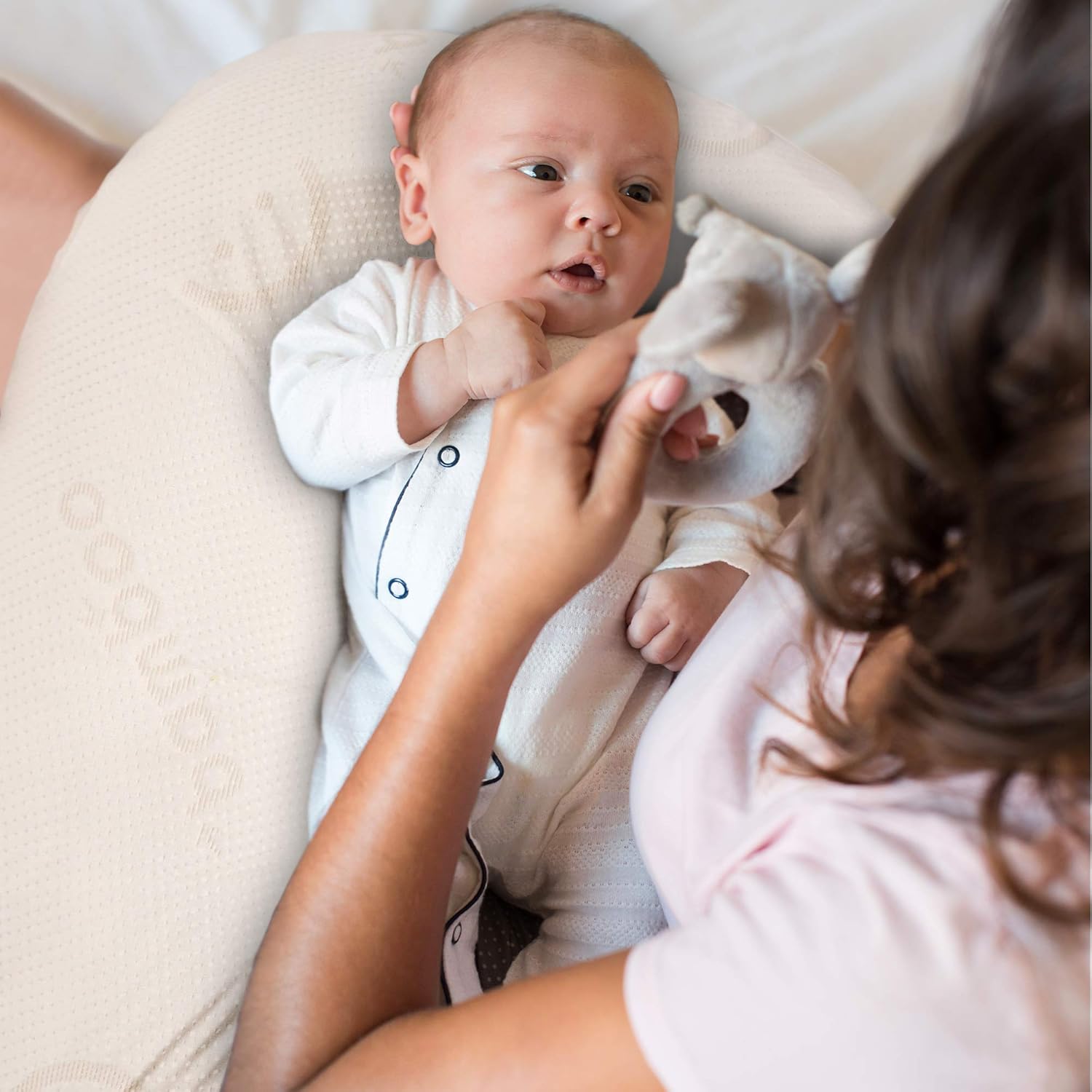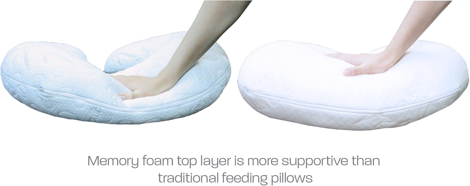 The baby works feeding pillow is the ideal companion for feeding baby. The memory foam top & bottom layers provide added support which allows mothers to breastfeed or bottle feed their babies more comfortably. While traditional feeding pillows become flattened while in use, the polyester fill and memory foam layers provide ideal support to elevate your baby to a natural level for a more comfortable feed for both you and your baby, while allowing you to sit up with proper posture. As part of baby works, the feeding pillow comes with a hypoallergenic fitted cover, made using rayon from bamboo fibers, which are soft and gentle, keeping the feeding pillow cool and comfortable.