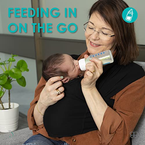 bblüv Snüg - Ready-To-Wear Baby Wrap Carrier - 4 Carrying Positions, Newborn To 18 Months, Breastfeed In On The Go, No Tying, No Knots, Adjustable (Black, Size 2)