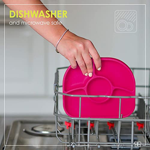 bblüv - Yümi - Silicone Suction Plate & Spoon Set for Baby, Infants and Toddlers, Anti-Spill, Microwave and Dishwasher Safe (Pink)