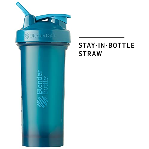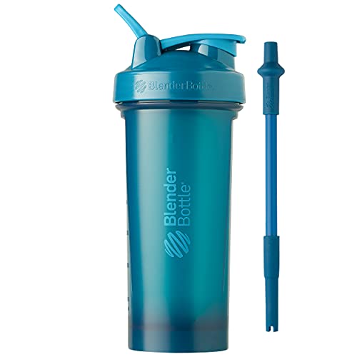 BlenderBottle Classic V2 Shaker Bottle with Straw for Protein Shakes and Pre Workout, 28-Ounce, Ocean Blue