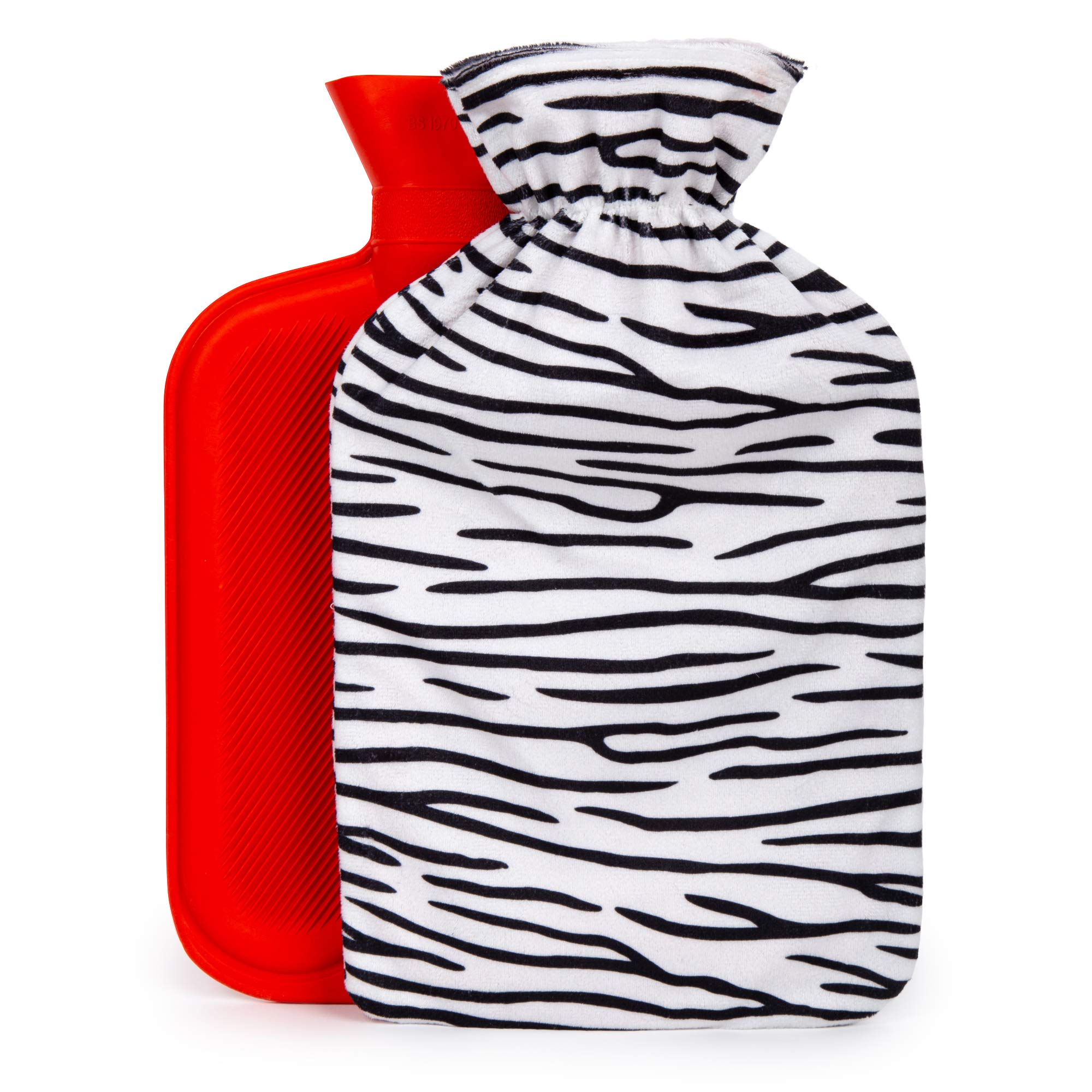 Bodico Hot Water Bottle with Cover, Rubber Heating Pad for Period Cramp Relief, Muscle Pain Relief, and More, Hot Water Bag for Fall Winter Season, Cute Zebra Print, 1.7 L