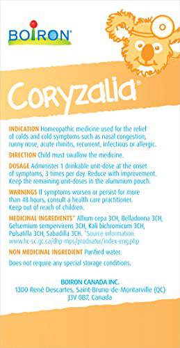 Boiron Coryzalia Children 60 Unit-doses (1 Ml Each) Bonus Pack for Colds and Cold Symptoms 60 Milliliter