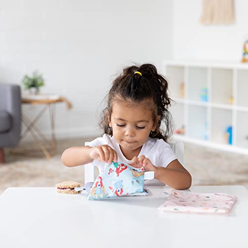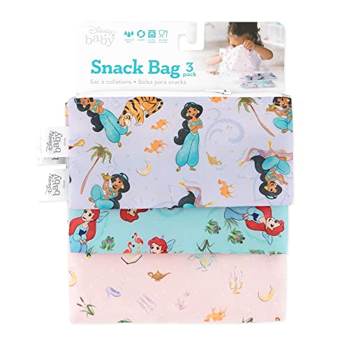 Bumkins Sandwich Bags/Snack Bags, Reusable Fabric, Washable, Food Safe, BPA Free - Disney Ariel and Jasmine (3-Pack)
