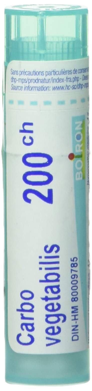 Boiron Carbo vegetabilis 200ch,Homeopathic medicine. Each tube contains 4 g (approximately 80 pellets)