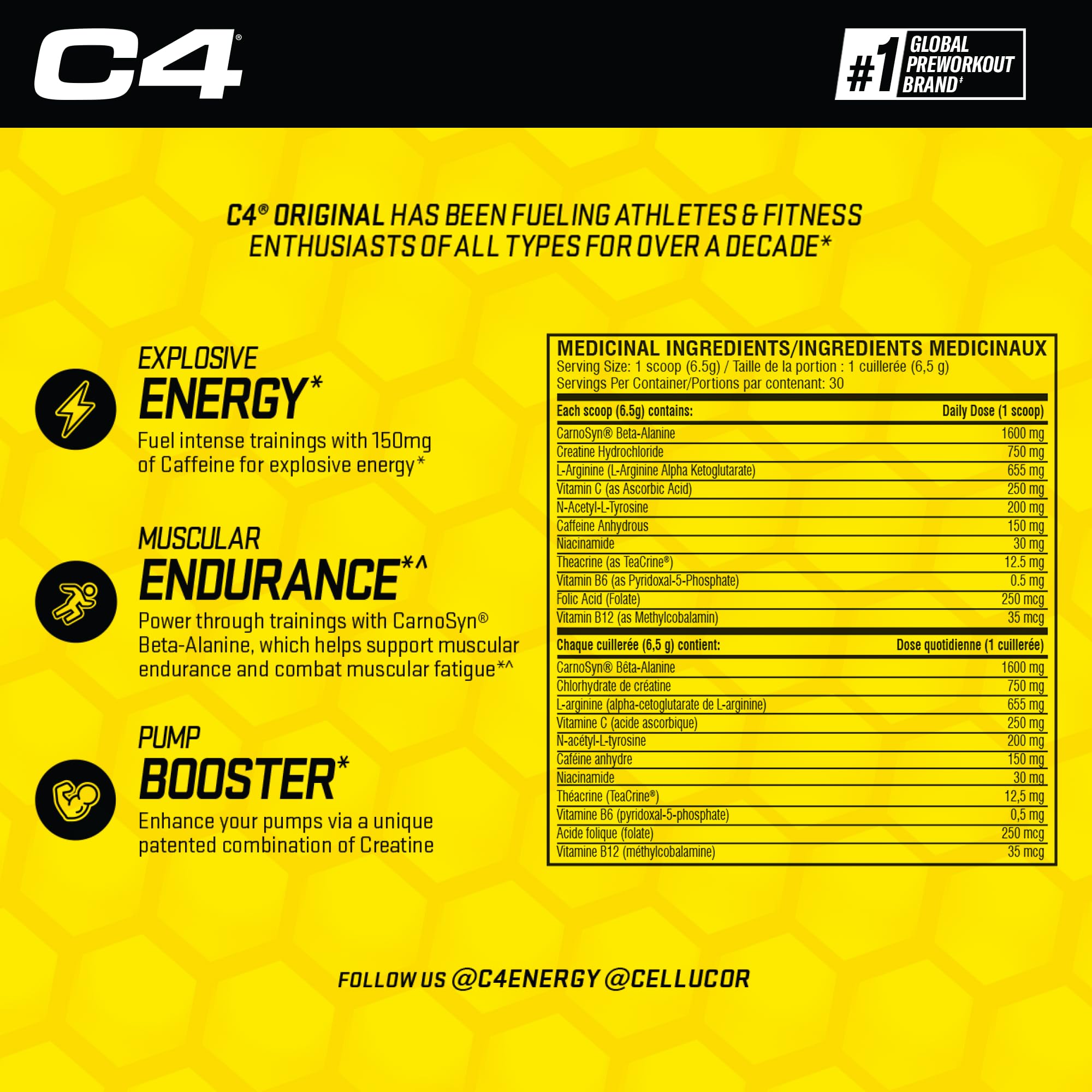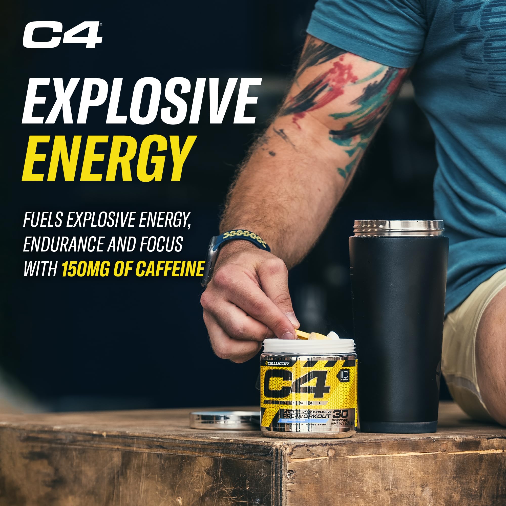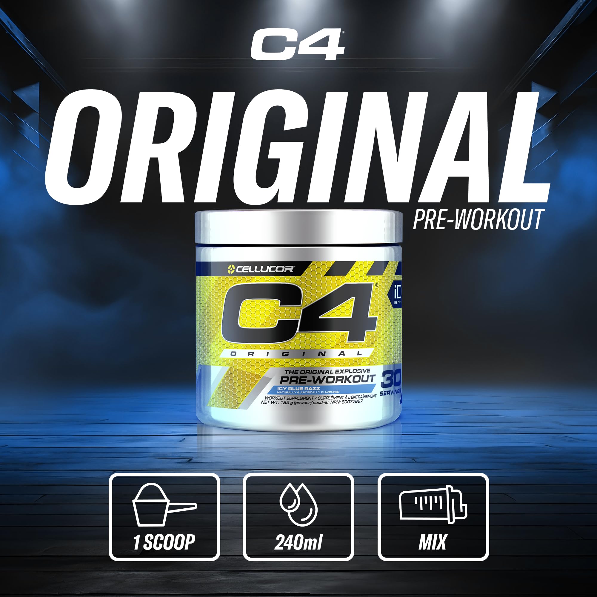 Cellucor C4 Original Pre Workout Powder - Sugar Free Preworkout Energy for Men & Women - 150mg Caffeine, Beta Alanine, Creatine - Icy Blue Razz, 30 Servings