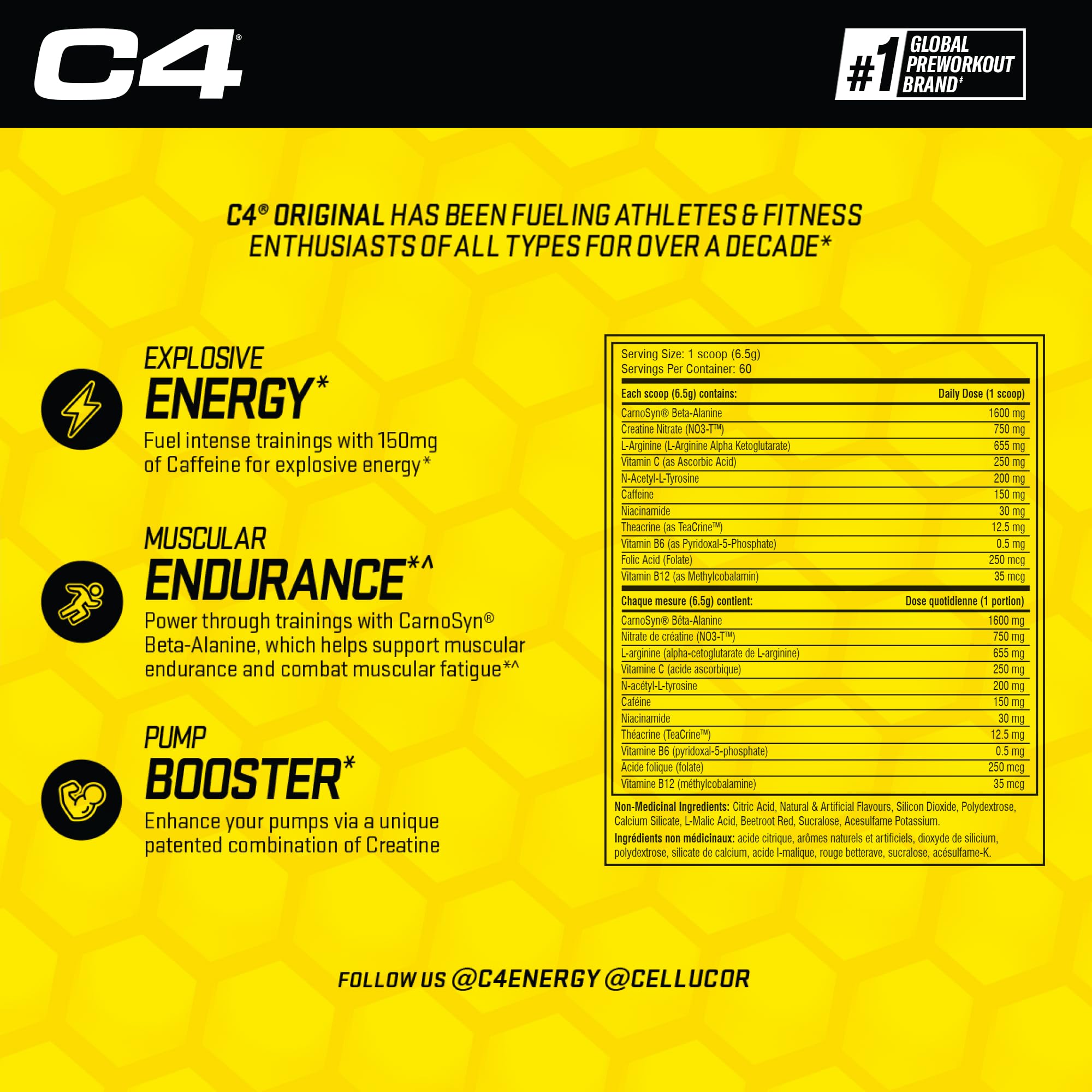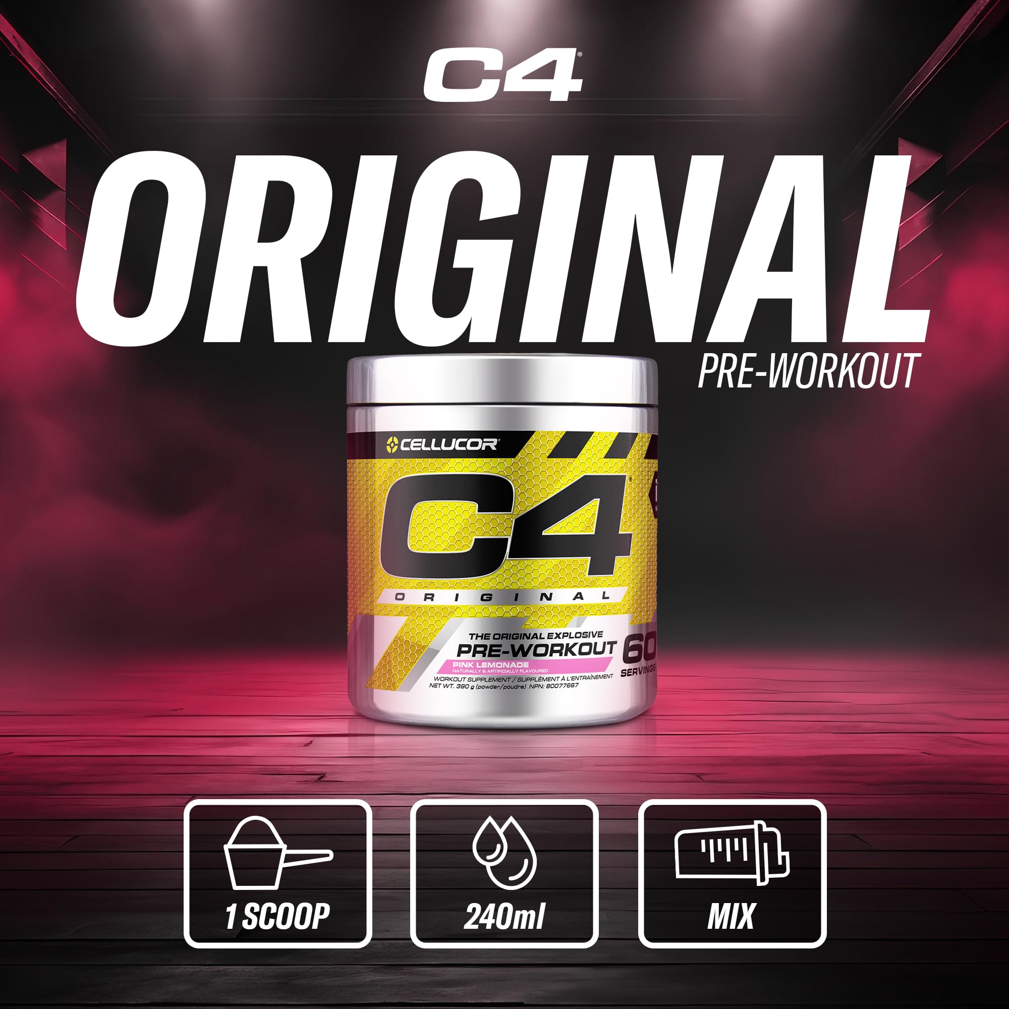 Cellucor C4 Original Pre Workout Powder - Sugar Free Preworkout Energy for Men & Women - 150mg Caffeine, Beta Alanine, Creatine - Pink Lemonade, 60 Servings