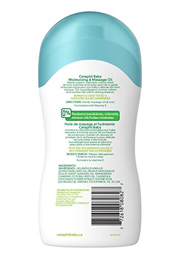 Cetaphil Baby Moisturizing and Massage Oil with Organic Calendula - 99% Natural - Paraben, Colourant and Mineral Oil Free, 200ml
