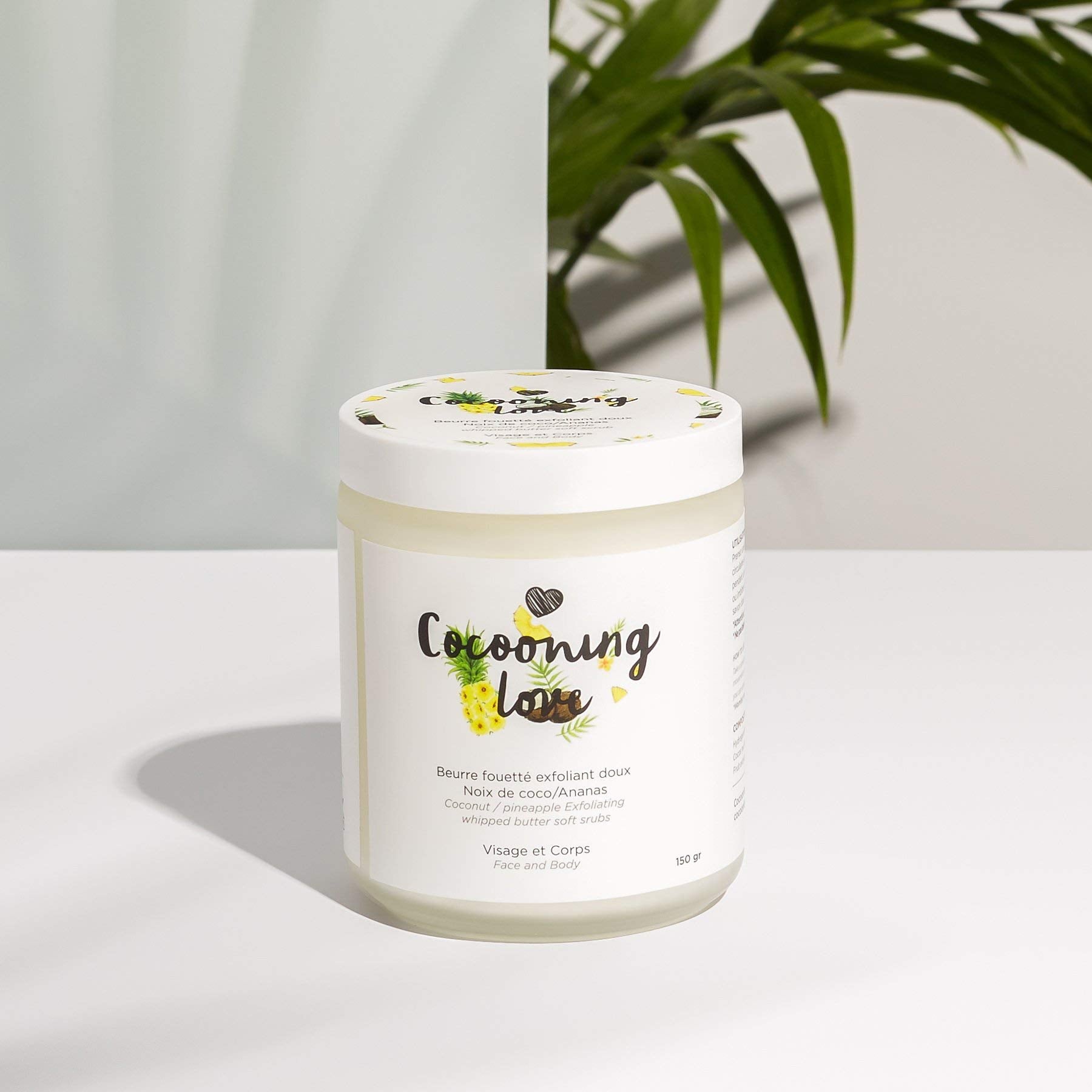 Cocooning Love 100% Natural and Vegan - Whipped Exfoliant - Pineapple and Coconut for All Skin Types, 150 Grams