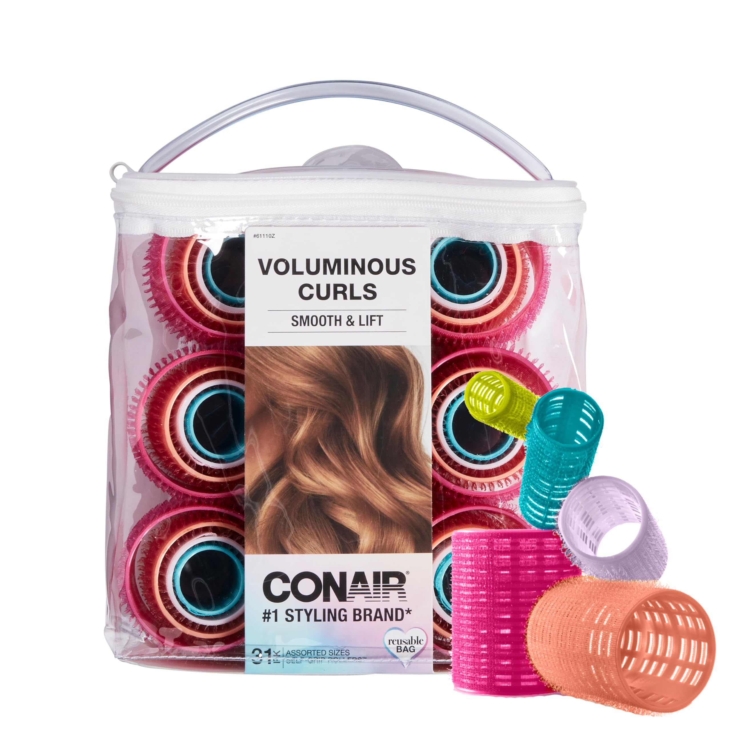 Conair SelfGrip Rollers Assorted, Roller sizes differentiated by color (mauve is largest), 31 Count