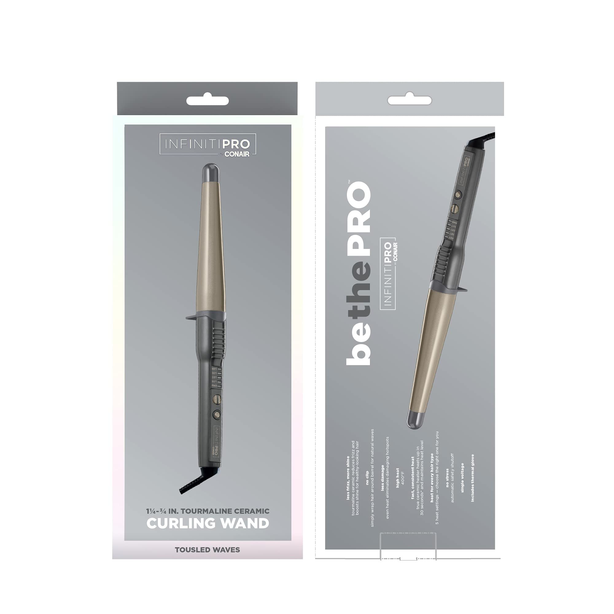 CONAIR Tourmaline Ceramic 1 1/4-Inch to 3/4-Inch Curling Wand, Tapered wand produces beachy waves