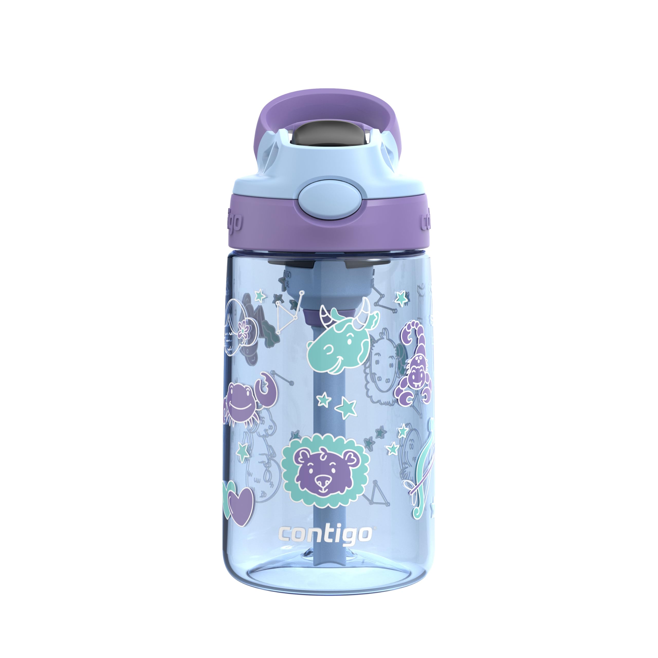 Contigo Kids Aubrey Straw Water Bottle with Leak-Proof Lid, BPA-Free Plastic, Dishwasher Safe, Periwinkle Amethyst Zodiac, 14 oz (414 mL)
