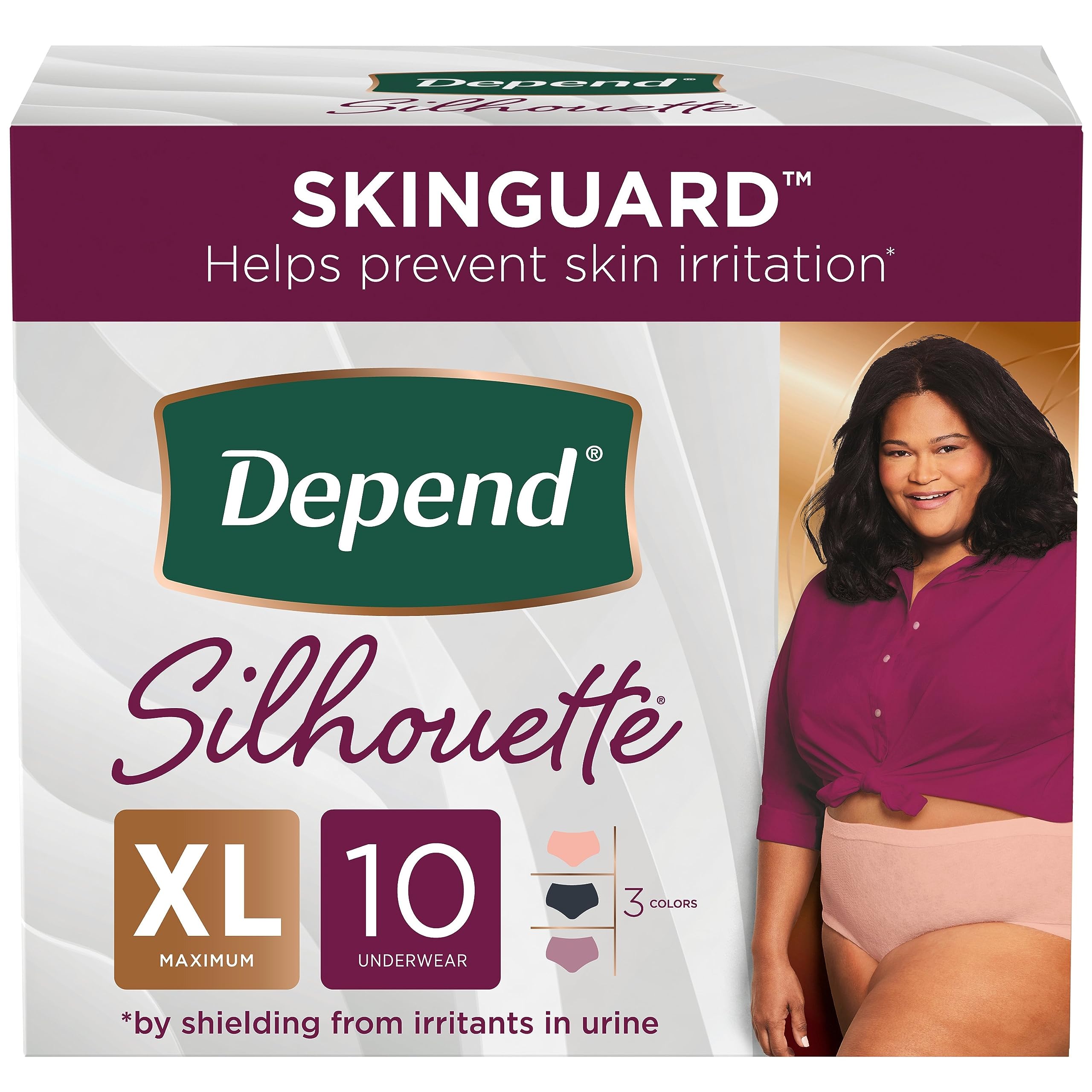Depend Silhouette Incontinence Underwear, Extra-Large (50–60" Waist), Maximum Absorbency, Pink, 10 Count