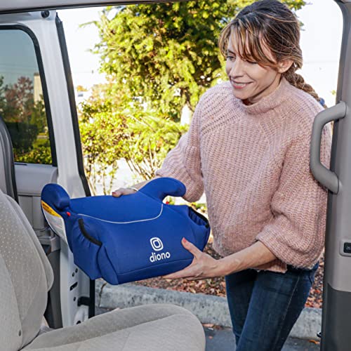 Diono Solana 2022, No Latch, Single Backless Booster Car Seat, Lightweight, Machine Washable Covers, Cup Holders, Blue